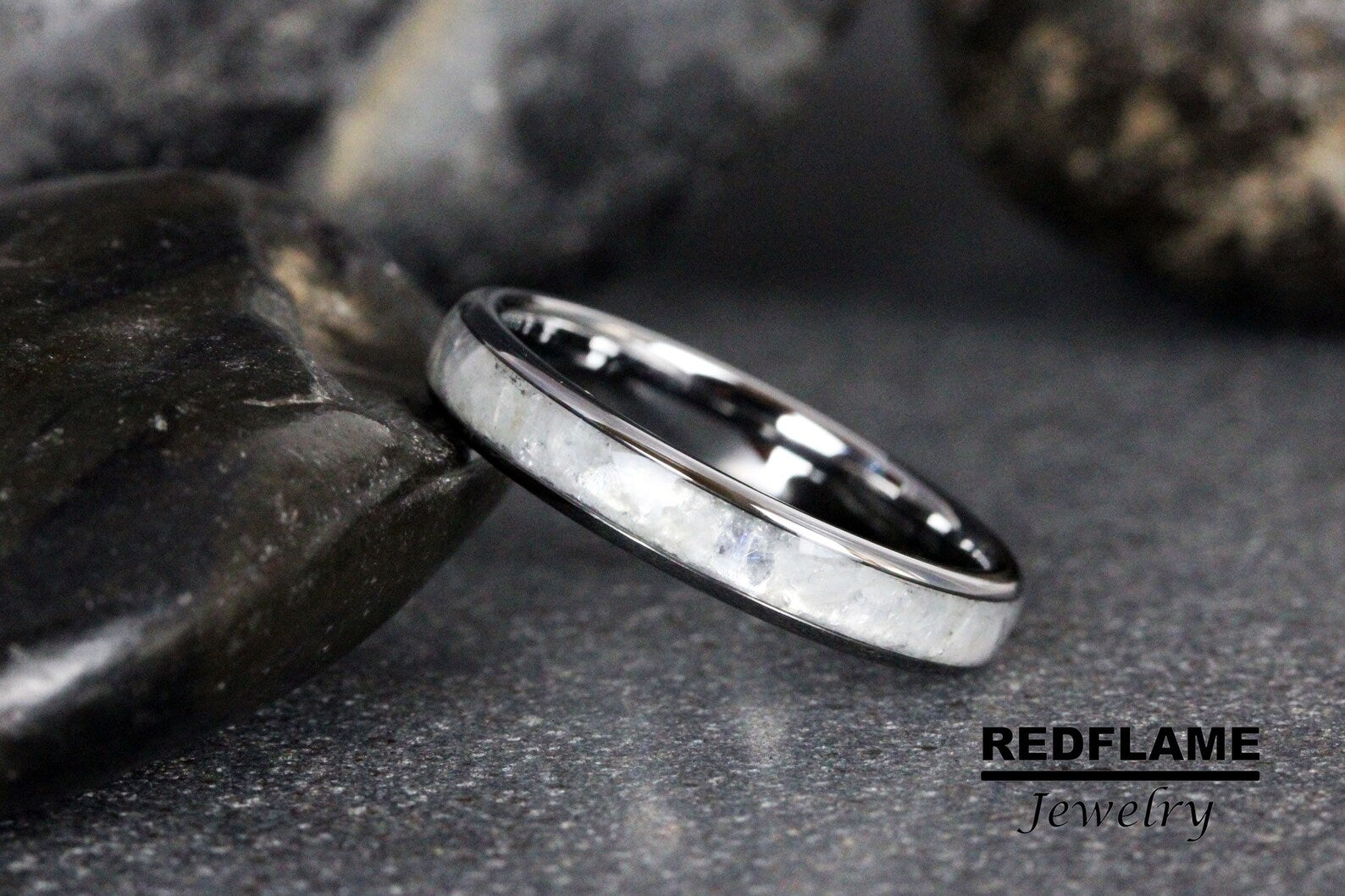 Rainbow Moonstone Tungsten Ring Set- Custom Order – TungstenRingStudio
