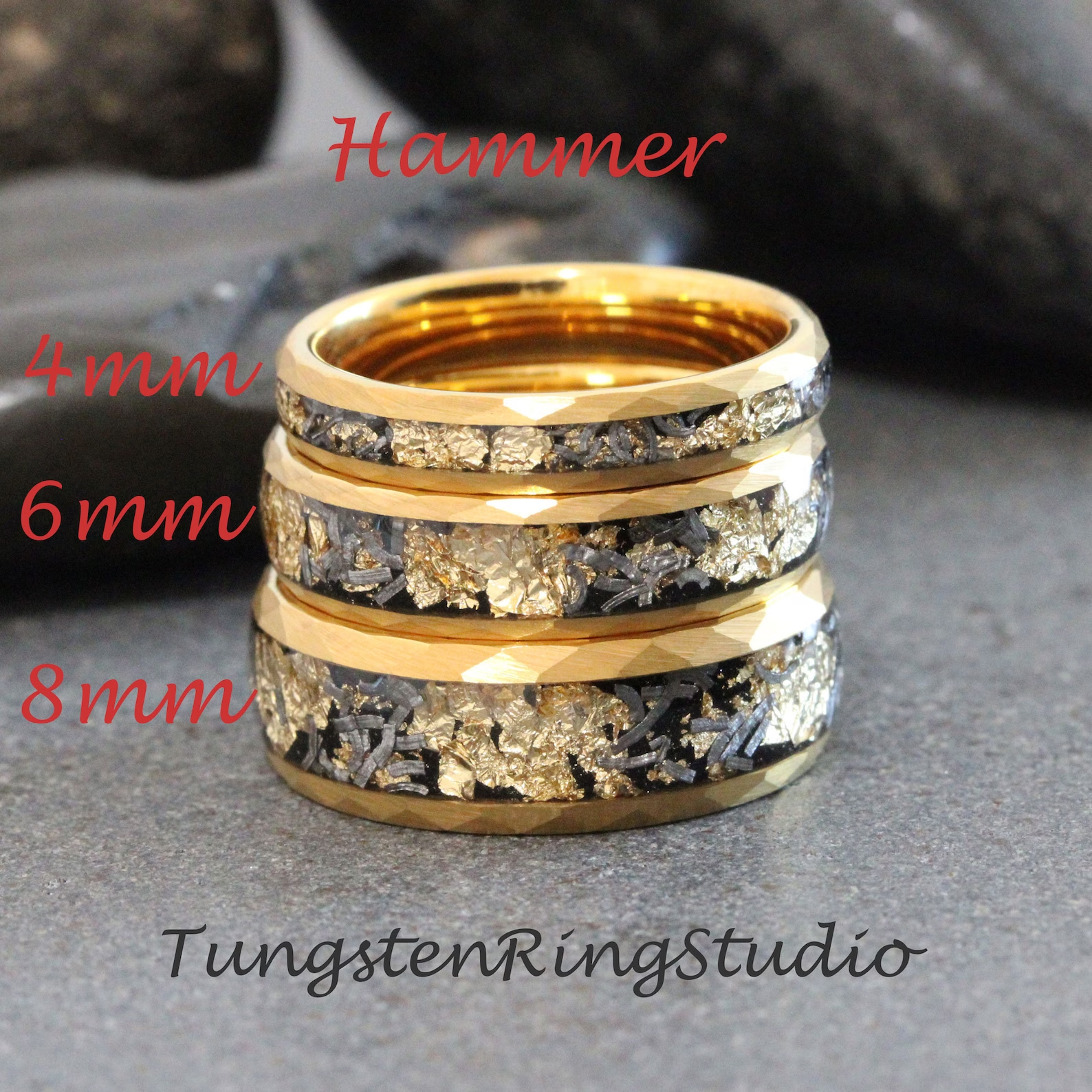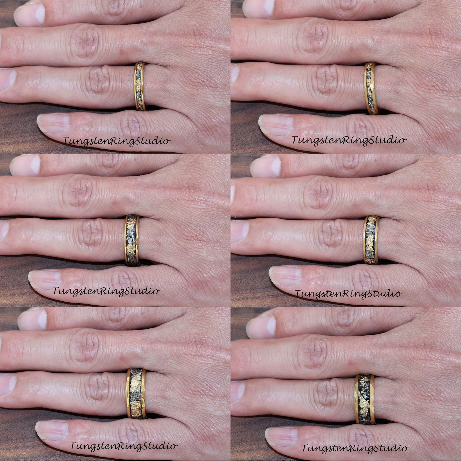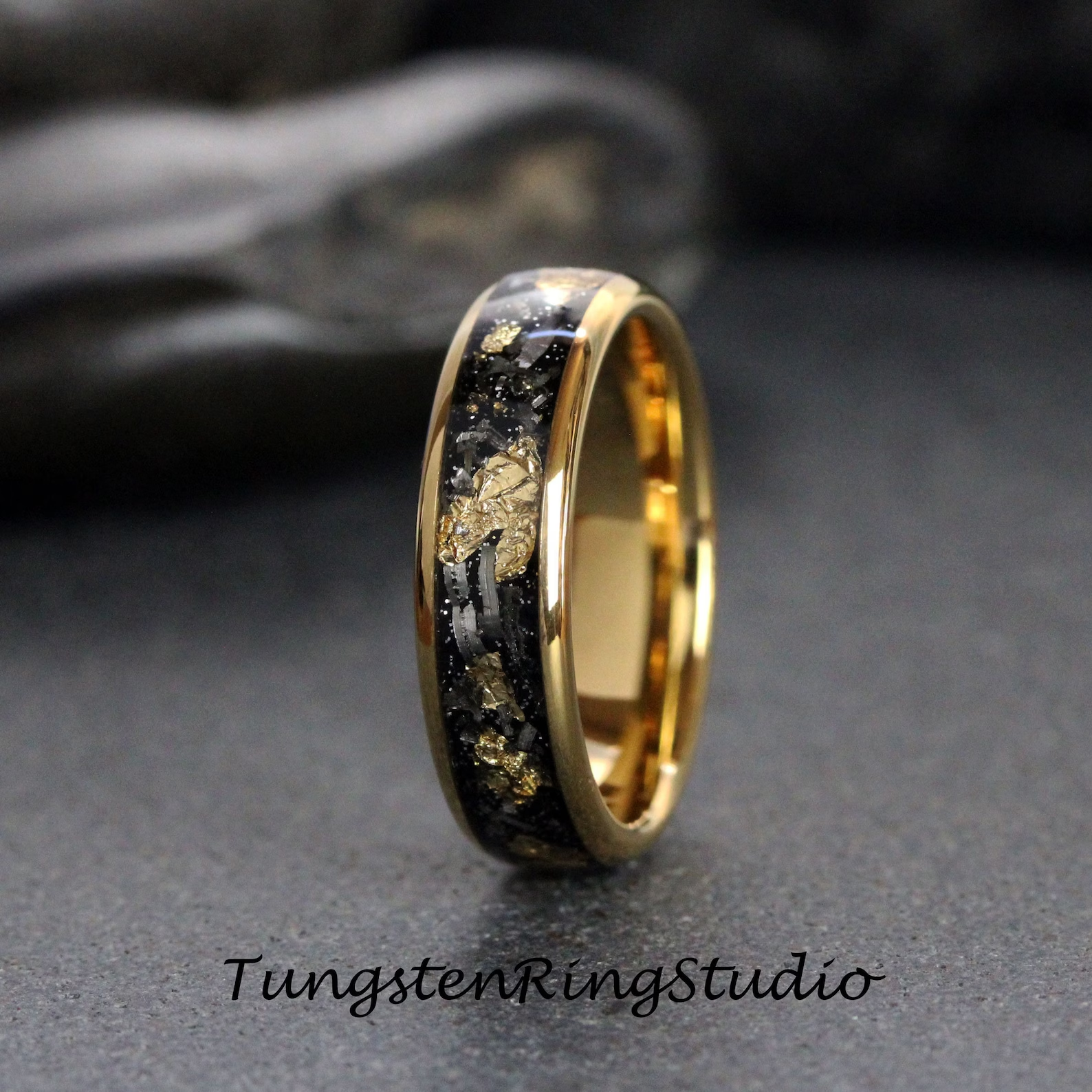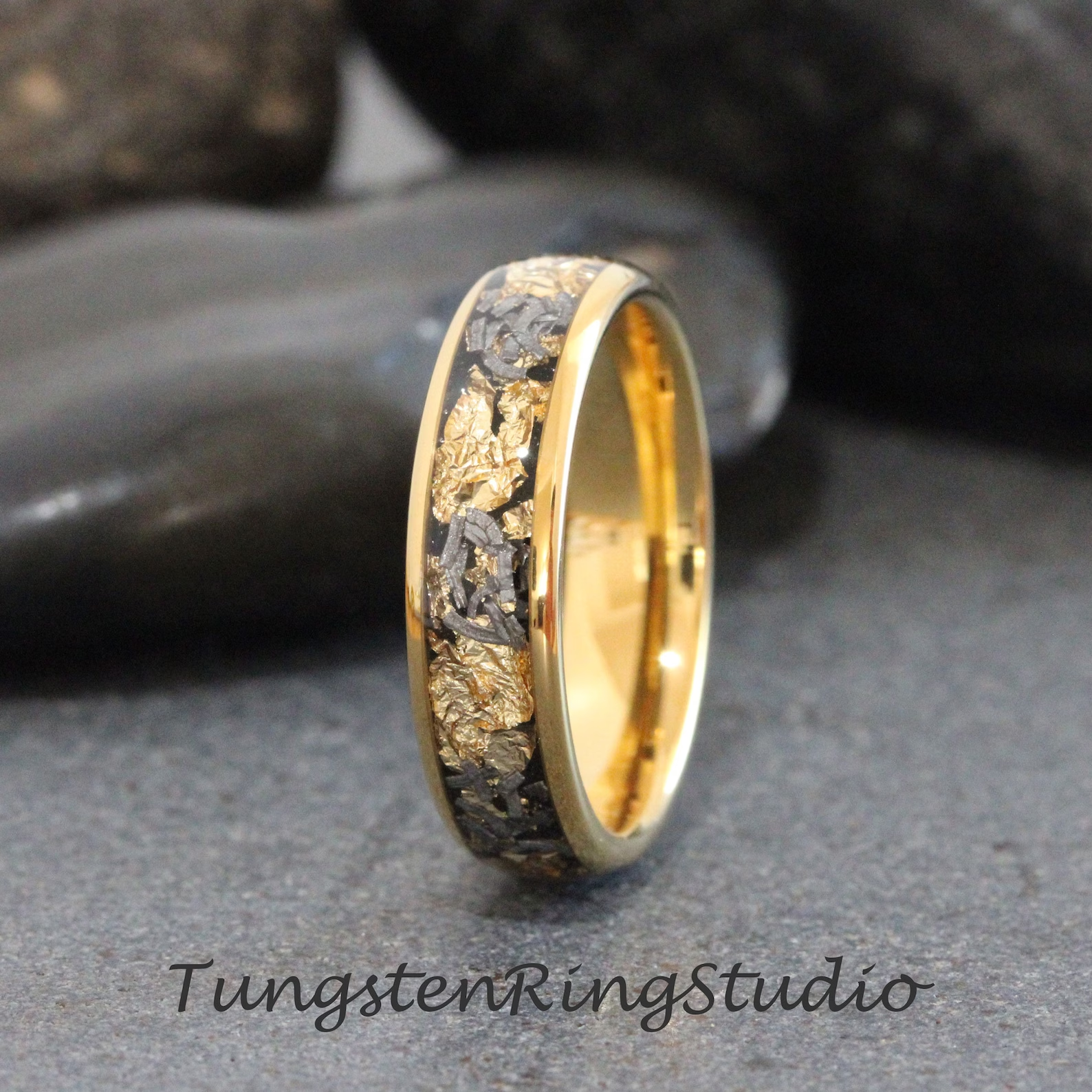Gold Leaf Meteorite Tungsten Ring 4mm 6mm 8mm – TungstenRingStudio