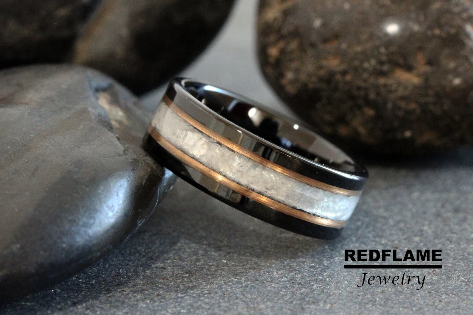Moonstone Rose Gold Accent Tungsten Ring- Custom Order – TungstenRingStudio