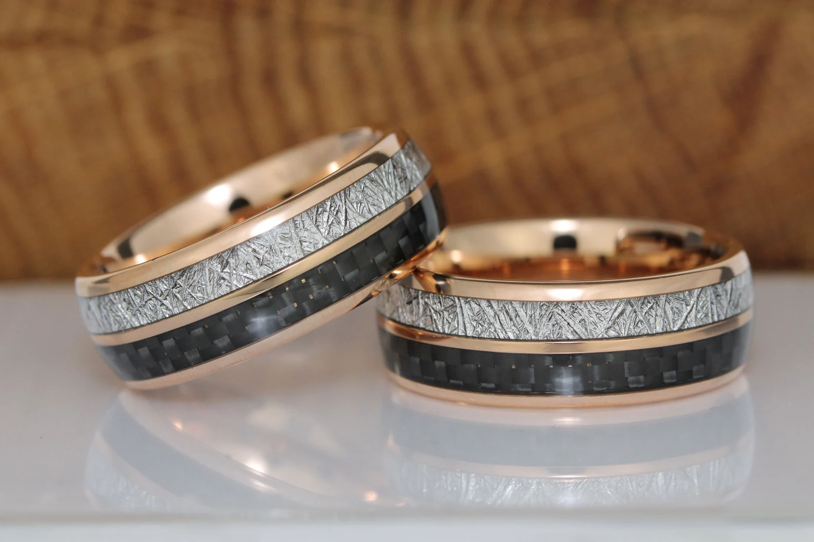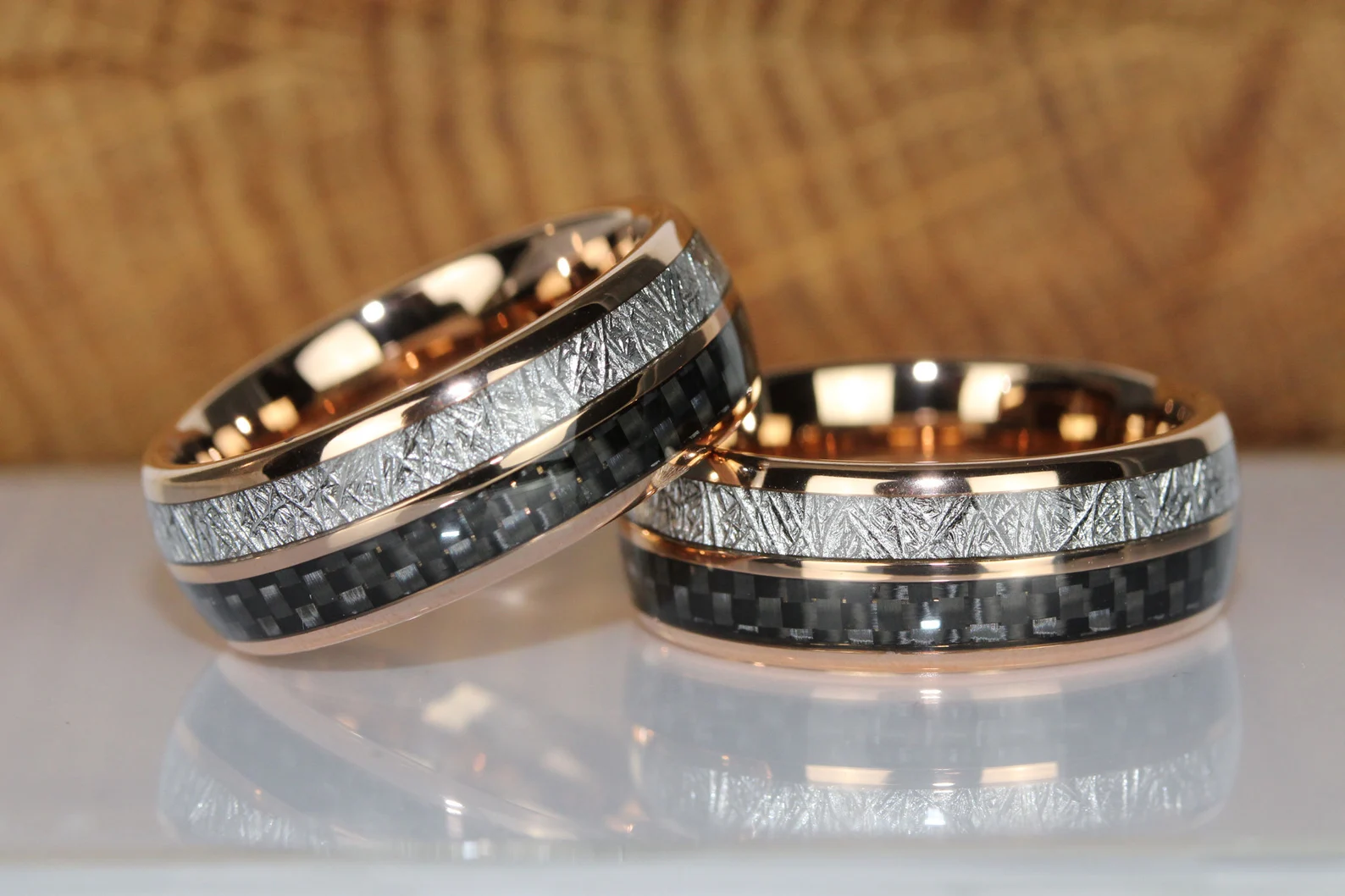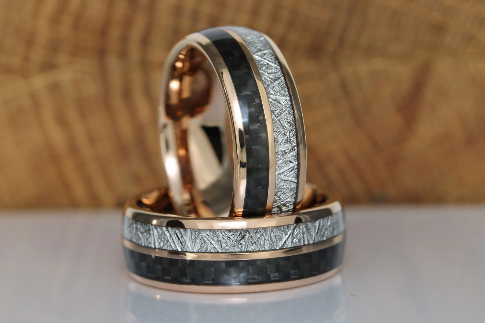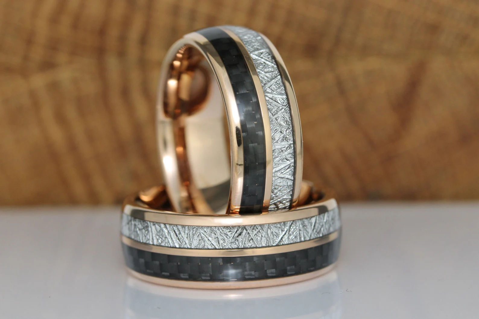 Meteorite Black Carbon Fiber Rose Gold Tungsten Ring – TungstenRingStudio