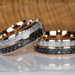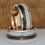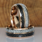 Meteorite Black Carbon Fiber Rose Gold Tungsten Rings Bands Matching Rings Ring Set Anniversary Ring Mans Mens Rings Hawaiian