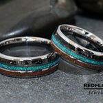 Meteorite Dinosaur Bone blue opal Silver Gray Tungsten Carbide Ring- C – TungstenRingStudio