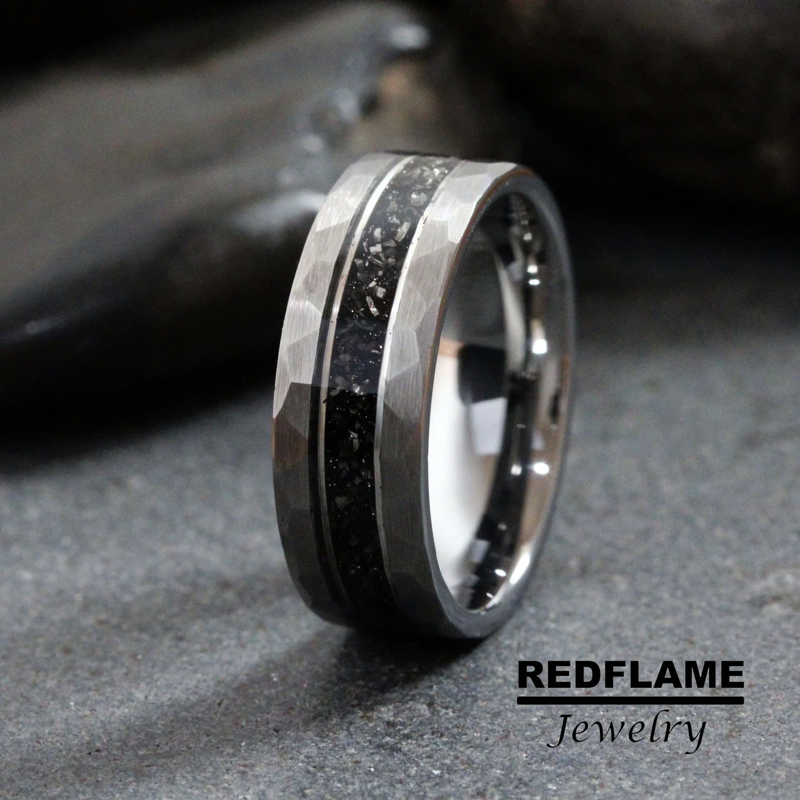 Meteorite Hammered Silver Tungsten Carbide Rings - Custom Order – TungstenRingStudio
