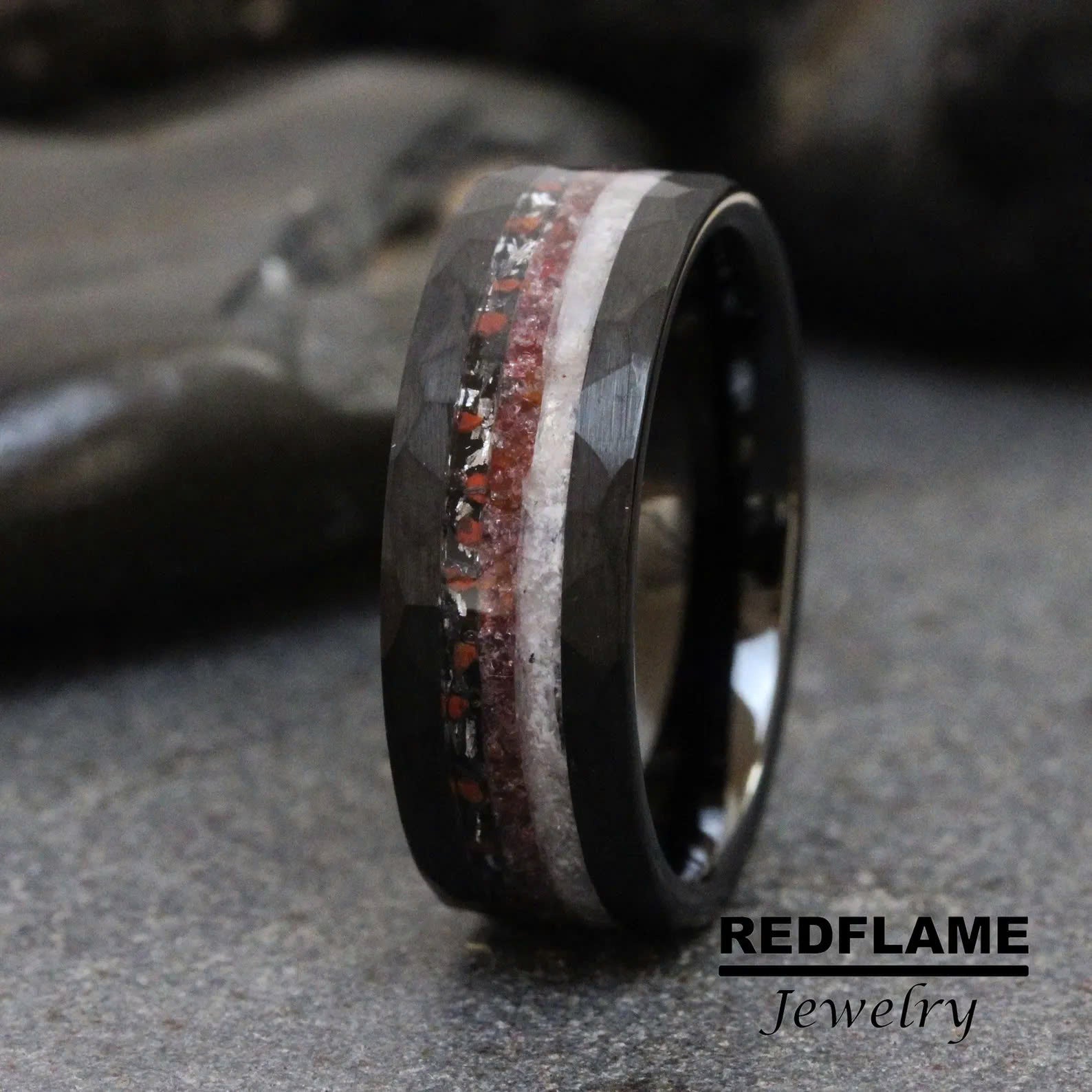 Meteorite Moonstone Red Garnet Dinosaur bone Black Tungsten Carbide Rings - Custom Order