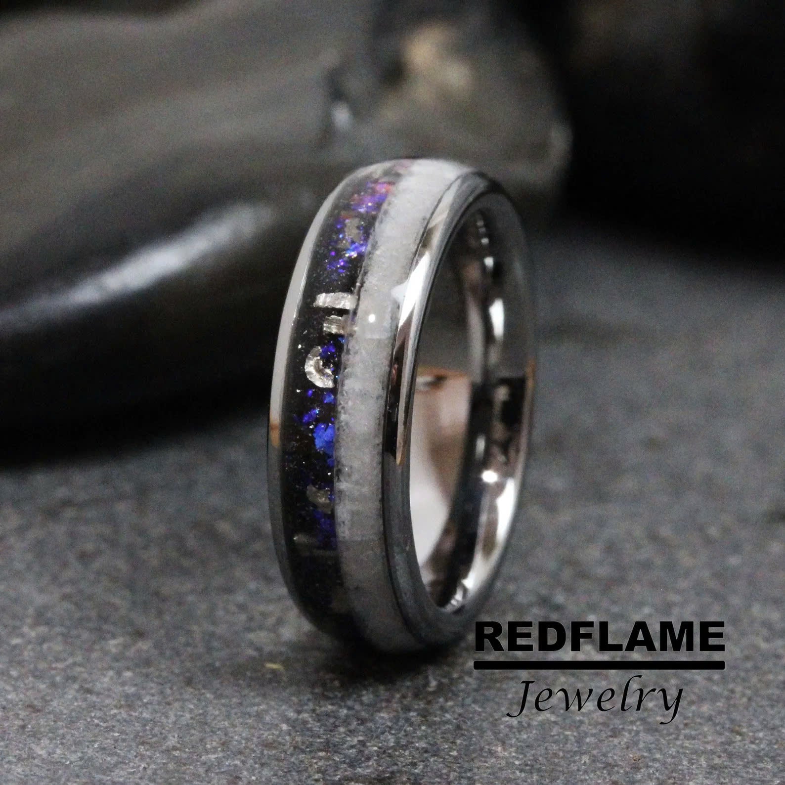 Meteorite Nebula Moonstone Silver Gray Tungsten Carbide Rings - Custom – TungstenRingStudio