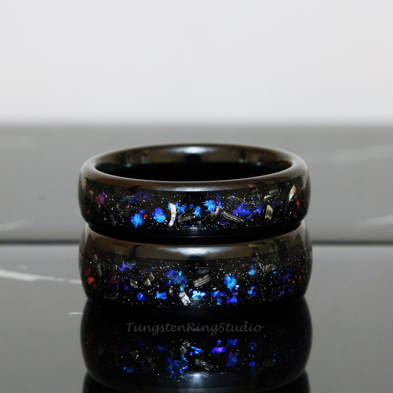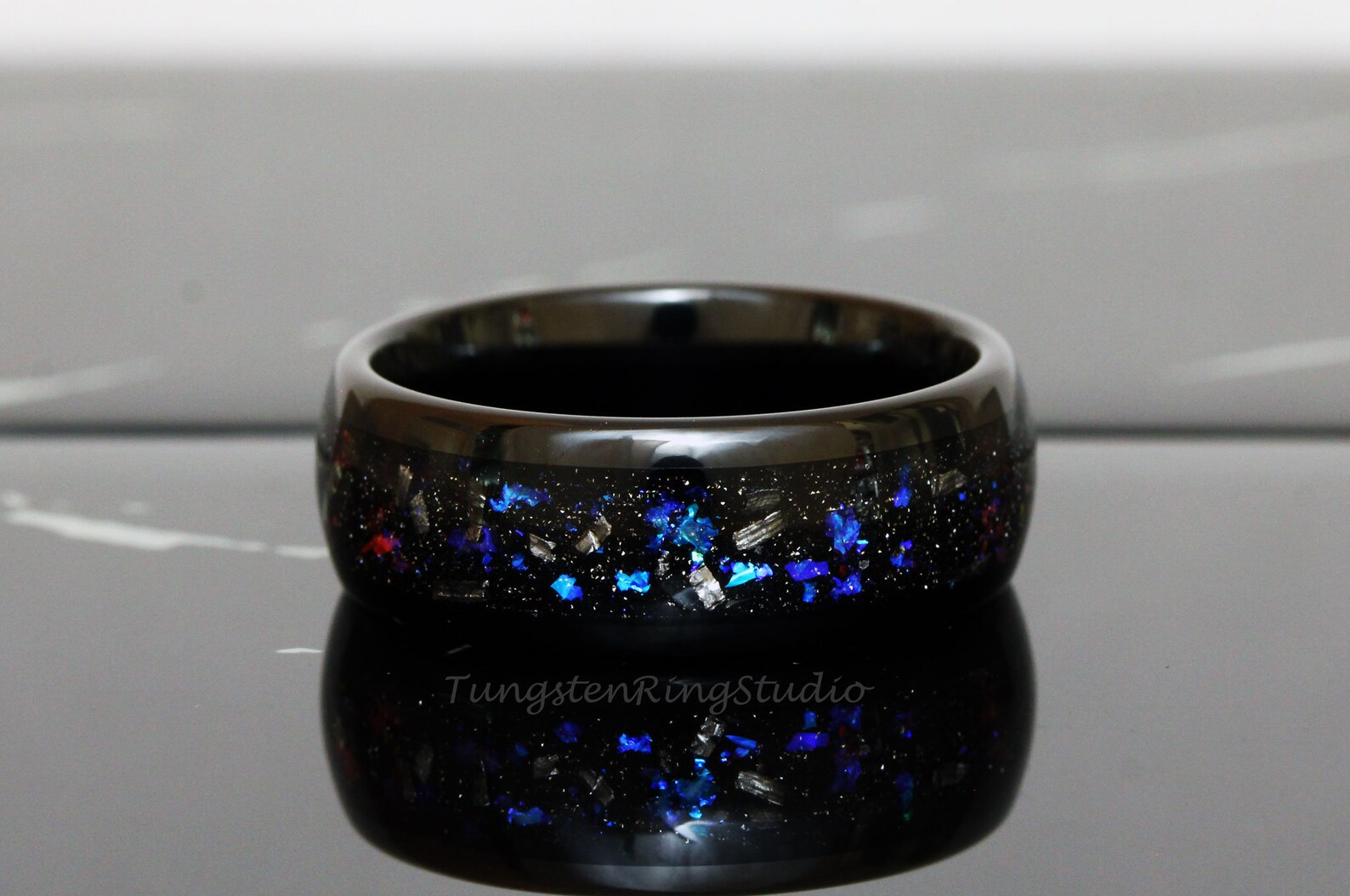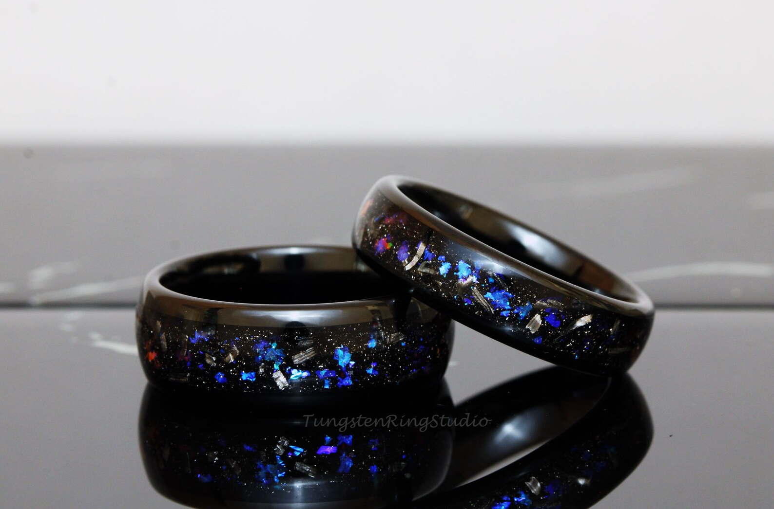 Meteorite Nebula Ring 6mm 8mm Black Band Men Women Ring Outer Space Ring Wedding Ring Anniversary Ring Doom Comfort Fit Tungsten Ring