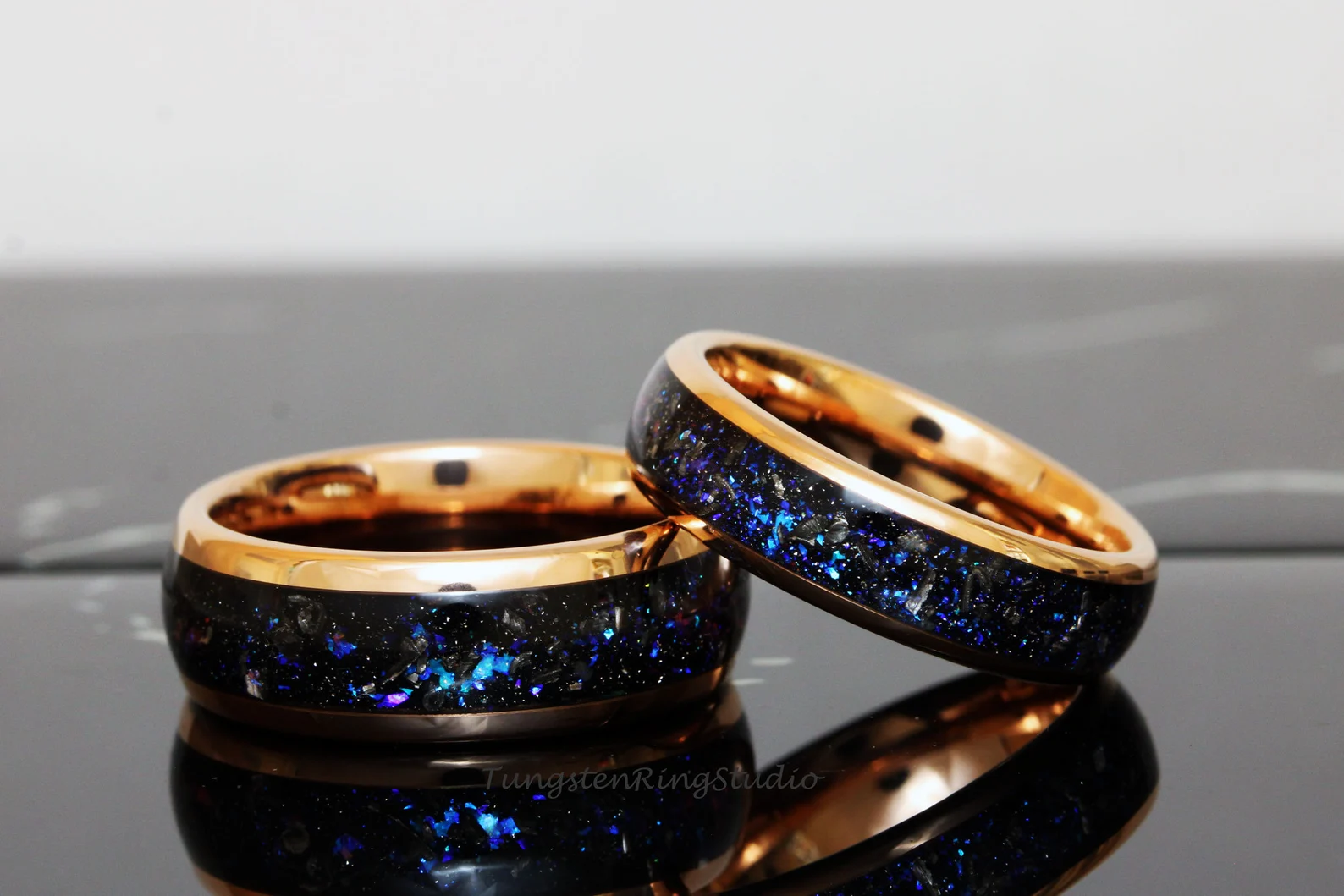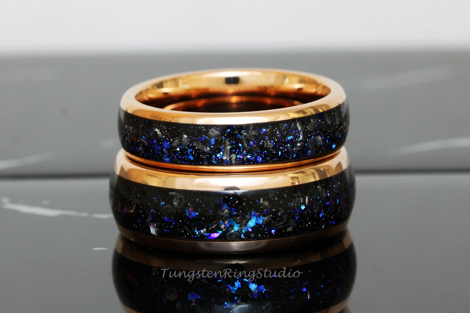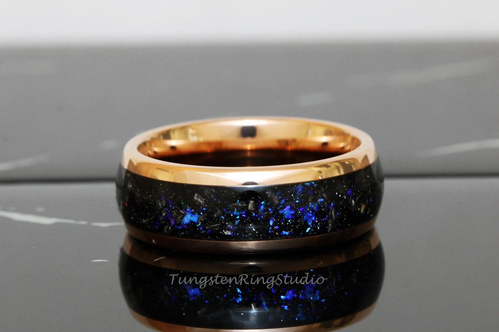 Meteorite Nebula Rose Gold Tungsten Ring 8mm – TungstenRingStudio