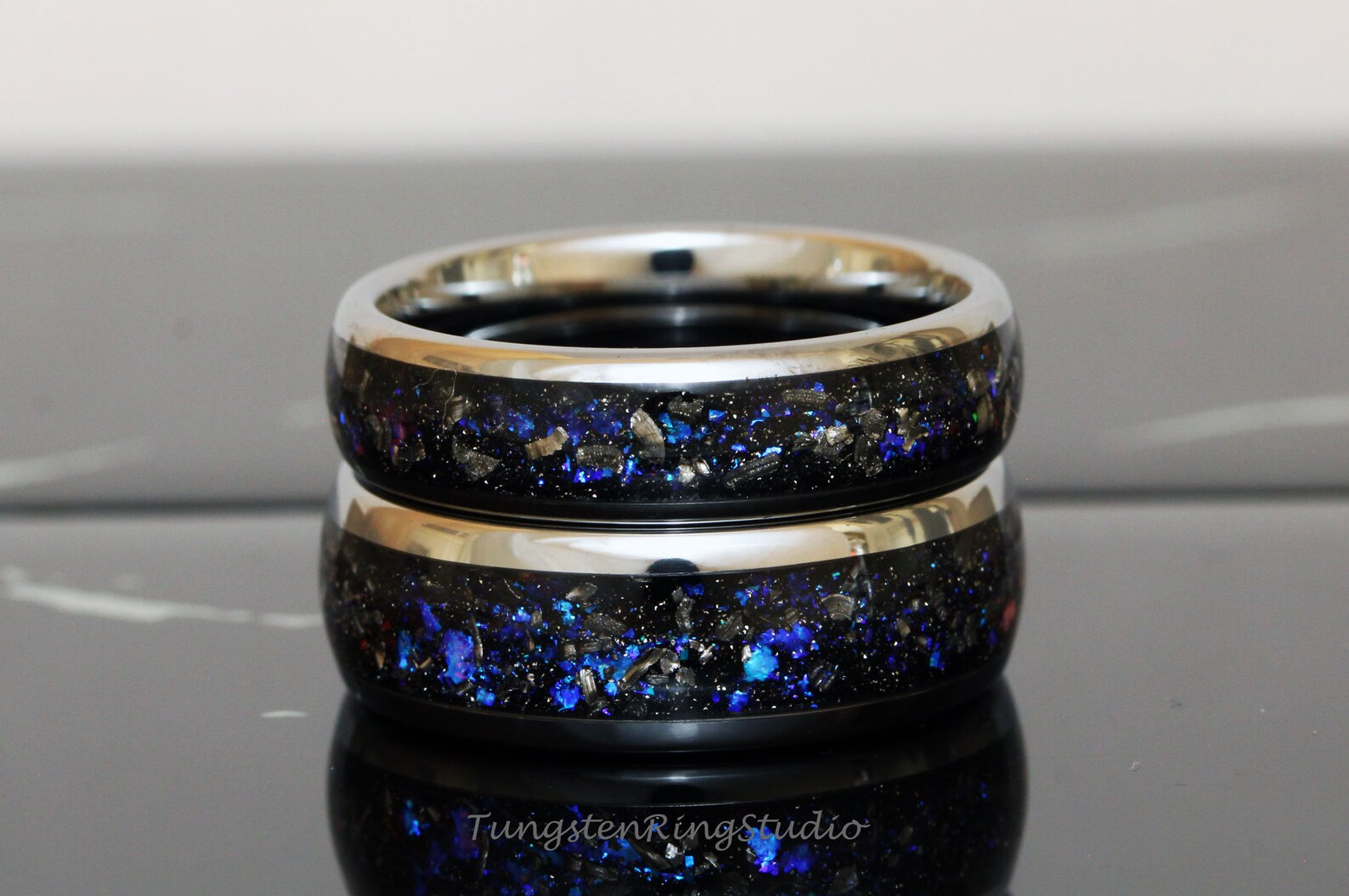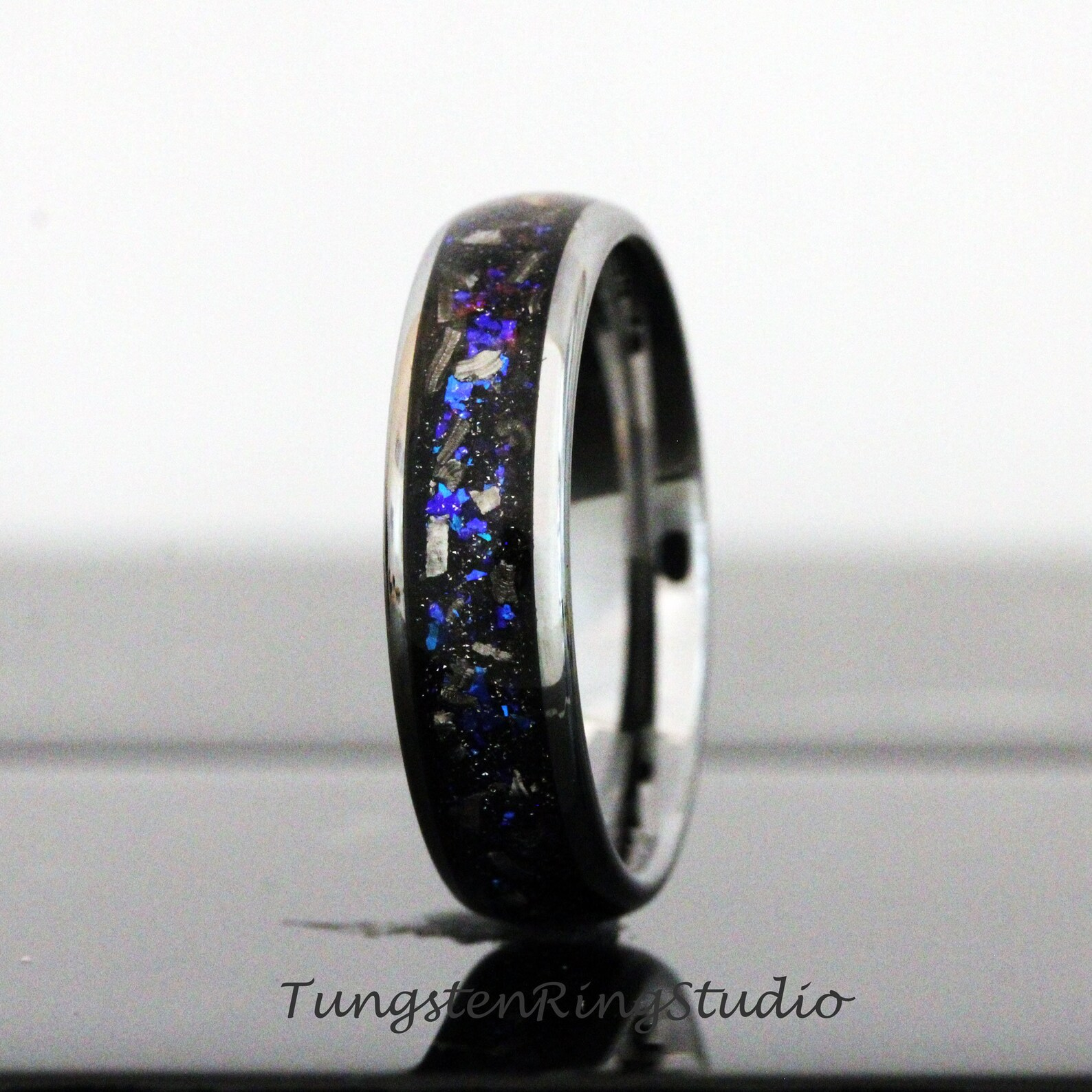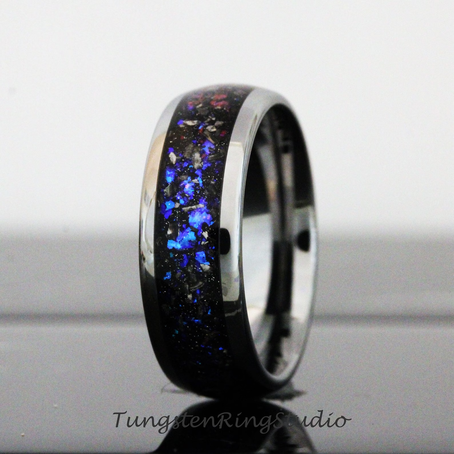 Meteorite Nebula Silver Gray Tungsten Ring 8mm – TungstenRingStudio