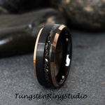Meteorite Ring Black Bevel Rose Gold Edges Tungsten Carbide Wedding Band Gibeon Meteorite Band Anniversary Mans Mens Band Bevel Flat