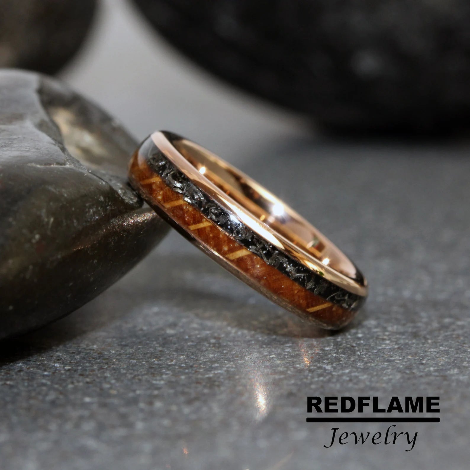 Meteorite Whiskey Barrel Tungsten Ring- Custom Order – TungstenRingStudio