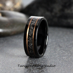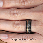 Meteorite Gold Stripe Black Tungsten Wedding Rings Gibeon Meteorite Bands Anniversary Mans Mens Ring Interstellar Ring Black Ring