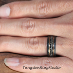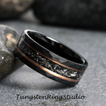 Hammer Meteorite Ring Rose Gold Strip Black Tungsten Wedding Rings Stripe Gibeon Meteorite Bands Anniversary Mans Mens Ring Interstellar
