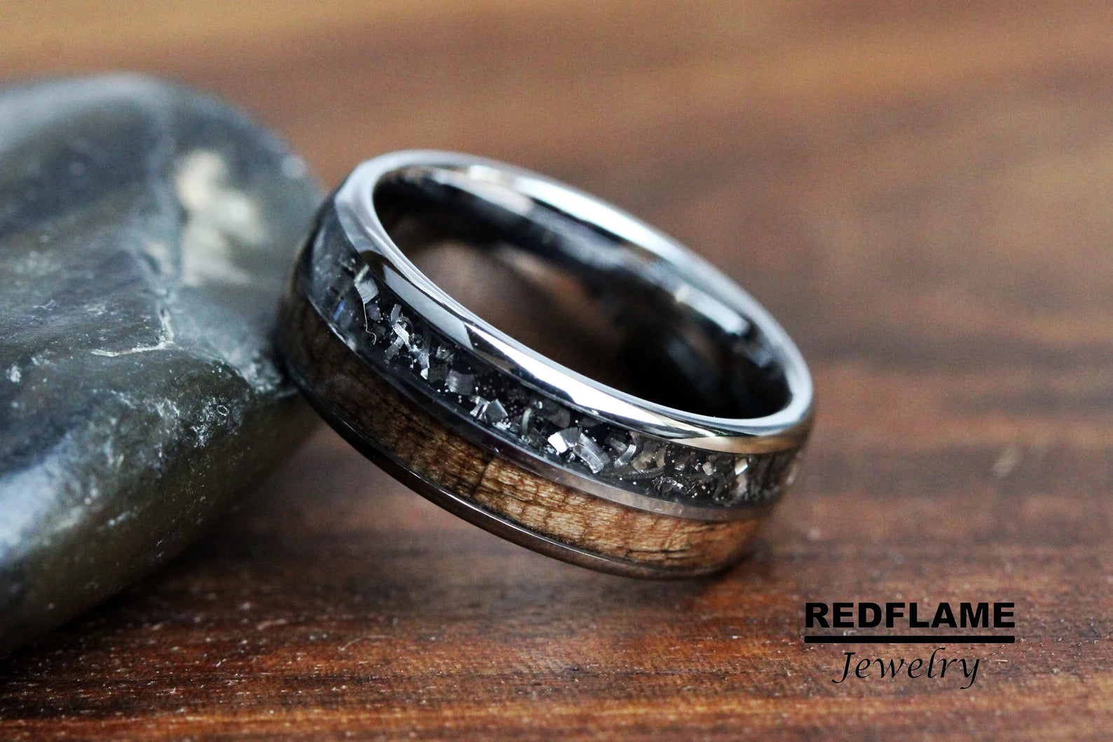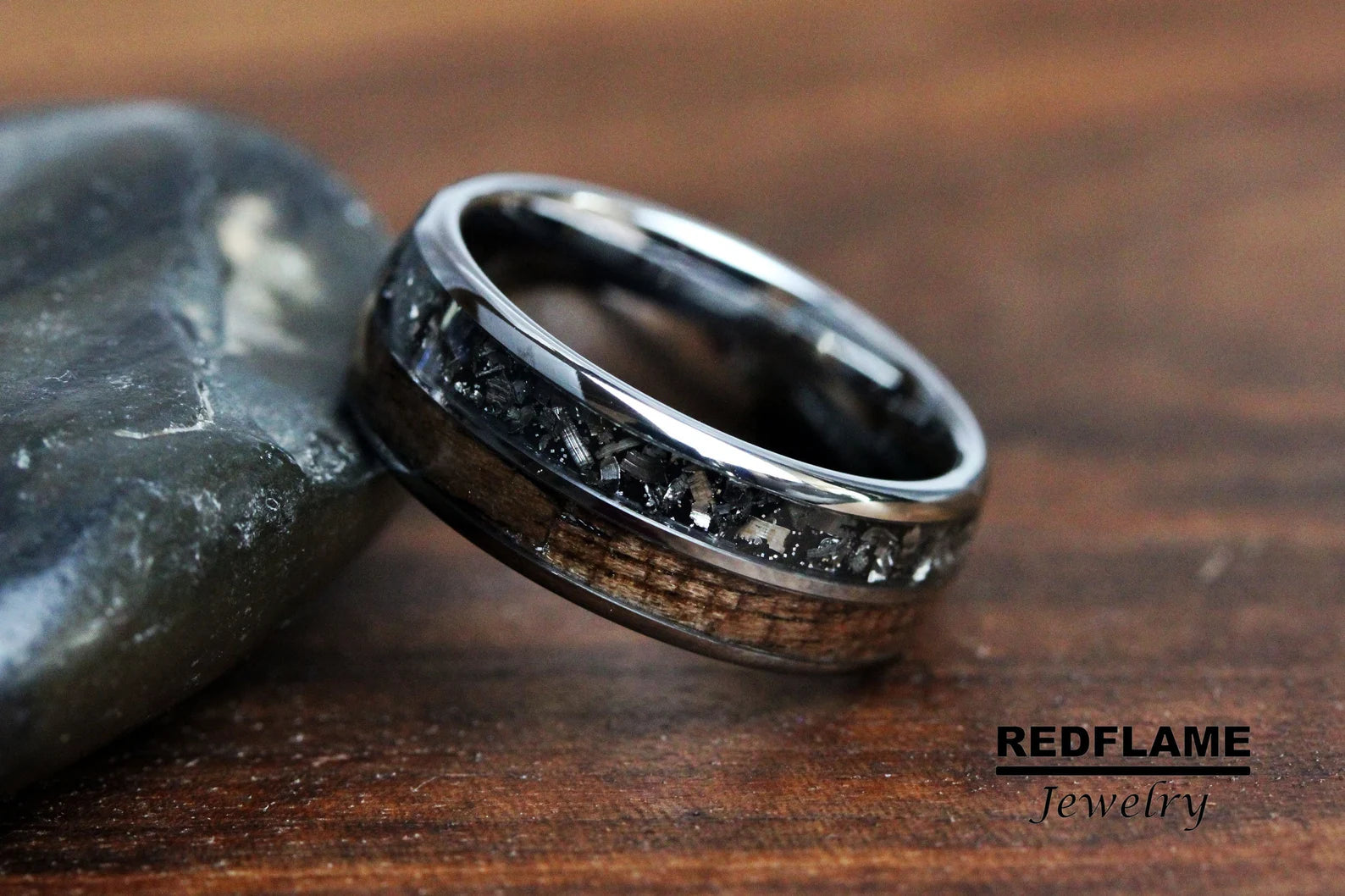 Meteorite Walnut Wood Tungsten Ring- Custom Order – TungstenRingStudio