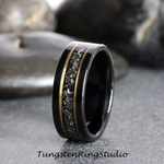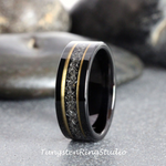 Meteorite Gold Stripe Black Tungsten Wedding Rings Gibeon Meteorite Bands Anniversary Mans Mens Ring Interstellar Ring Black Ring