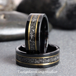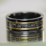 Meteorite Yellow Gold Strip Black Tungsten Carbide Ring – TungstenRingStudio