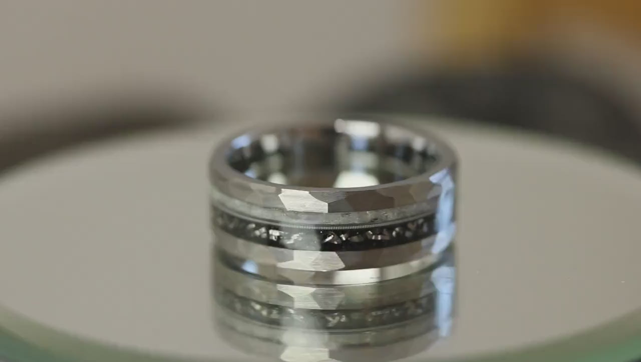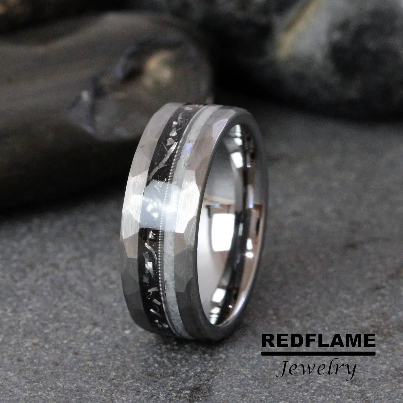 Moonstone Meteorite Guitar string Silver Gray Tungsten Carbide Ring- C – TungstenRingStudio