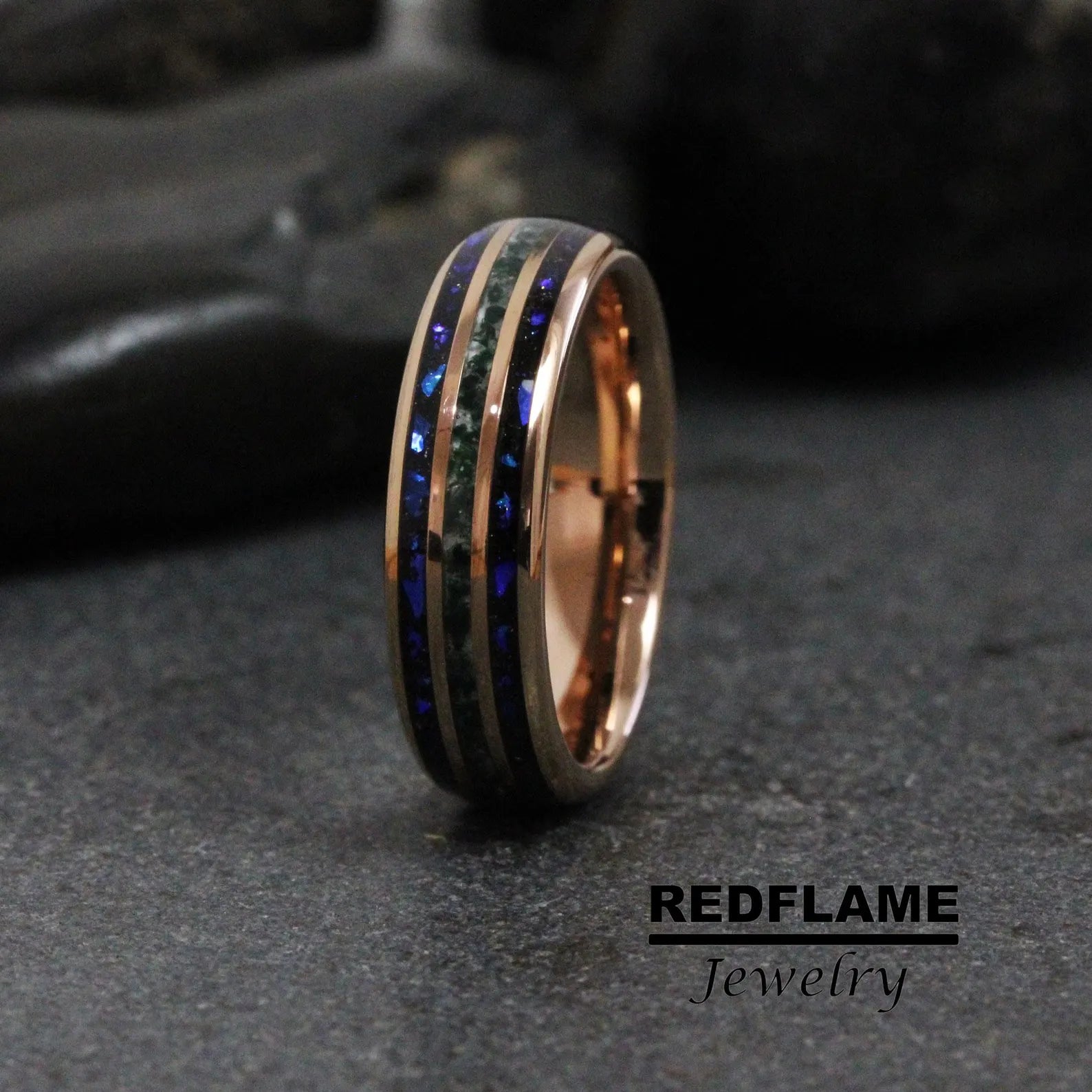 Moss Agate Nebula Blue stone Rose Glod Tungsten Carbide Rings - Custom – TungstenRingStudio