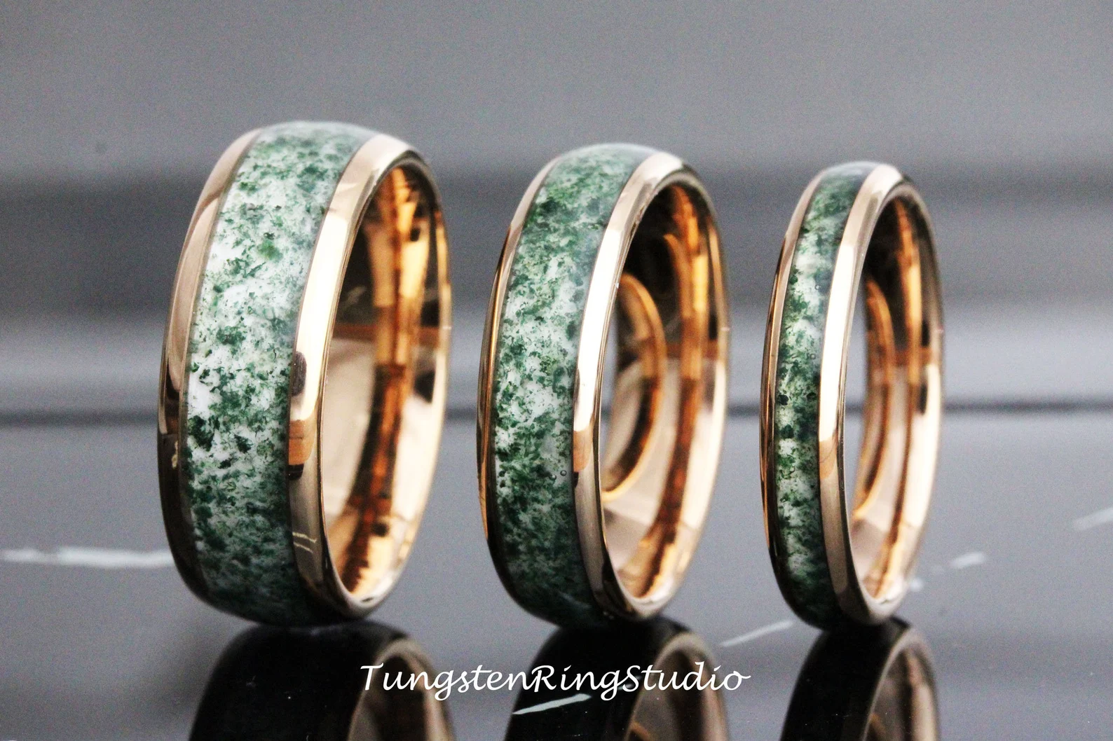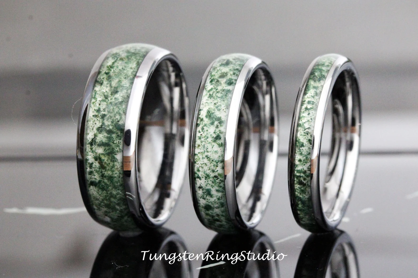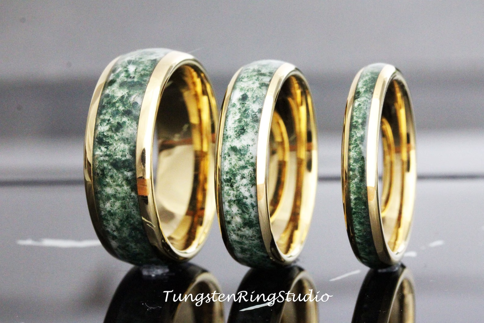 Moss Agate Tungsten Ring Set – TungstenRingStudio