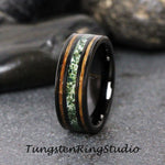 Men Moss Agate Whiskey Barrel Wood Wedding Ring 8mm Green Moss Wood Black Tungsten Carbide Men Band Mens Men & Women RingCUSTOM ORDERS ARE WELCOME!