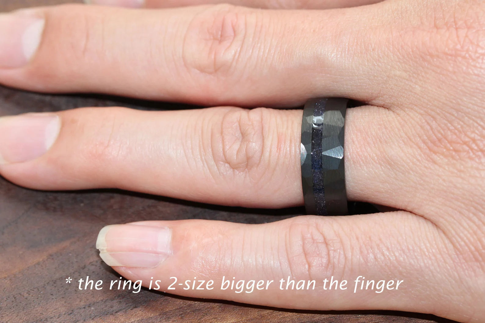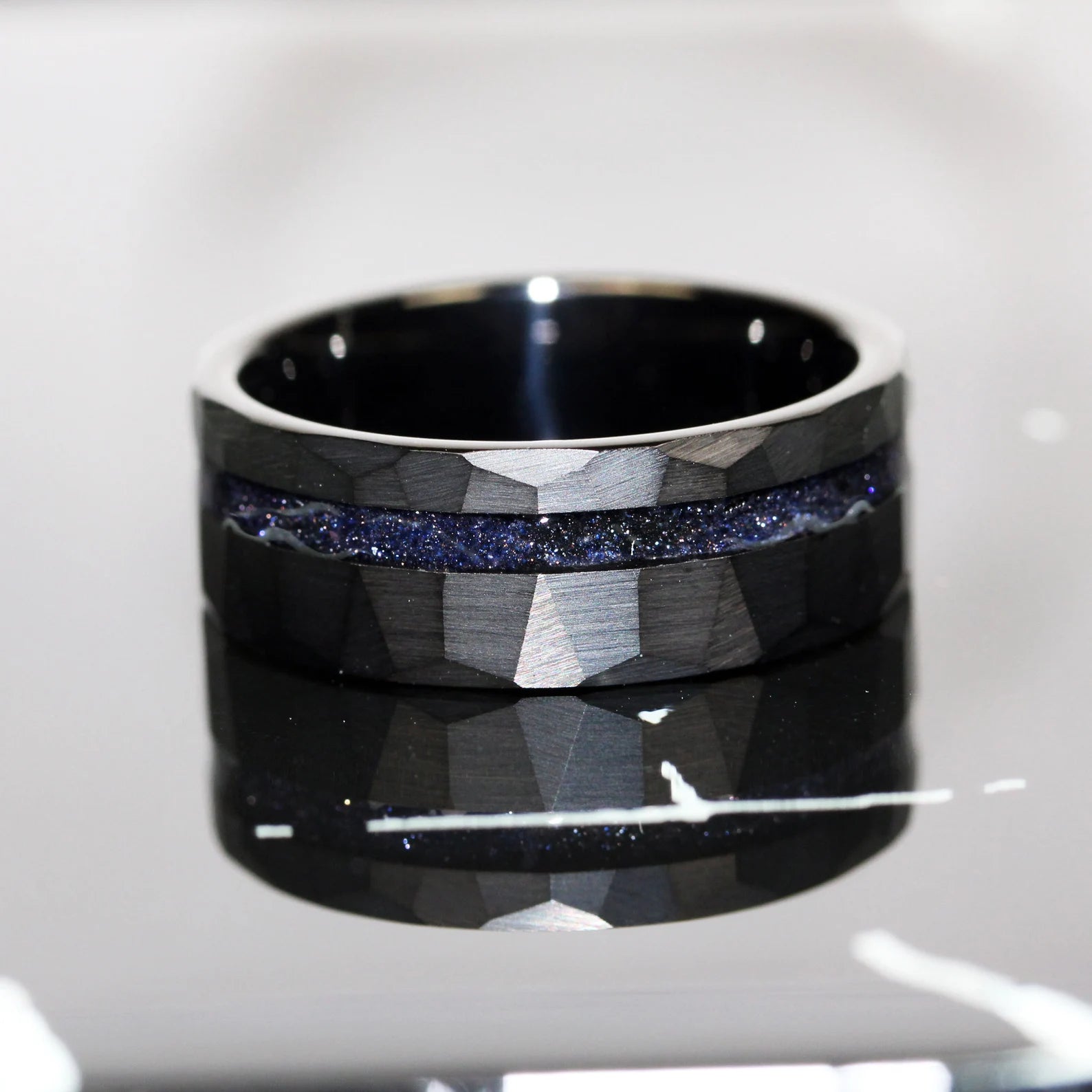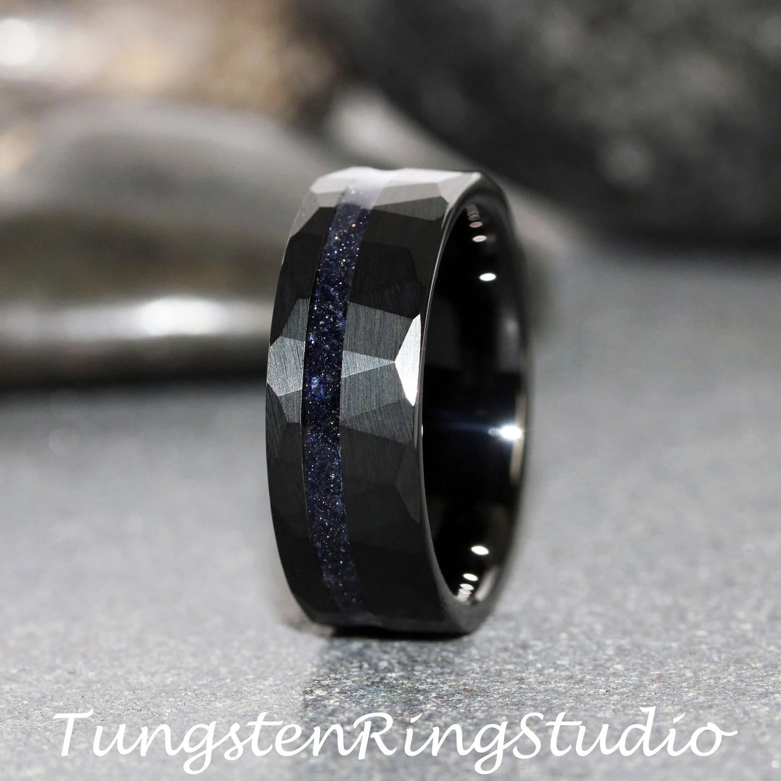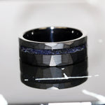 Nebula Blue Sandstone Black Hammered Offset Tungsten Ring – TungstenRingStudio