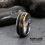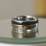 Combo Double Inlay: Obsidian Tiger Eye Crushed Wedding Ring Tungsten ring, women ring, men ring