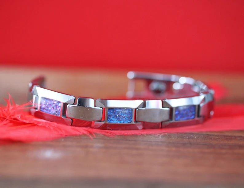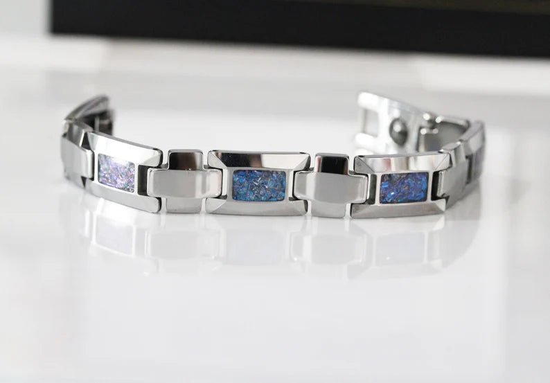 Your own sand will be inlaid over the groove of the tungsten setting and finally covered with our protective armor layer that shields it from water, dirt, and grime in order to protect the inlays inside. The bracelet looks great for every day or on your occasions.