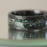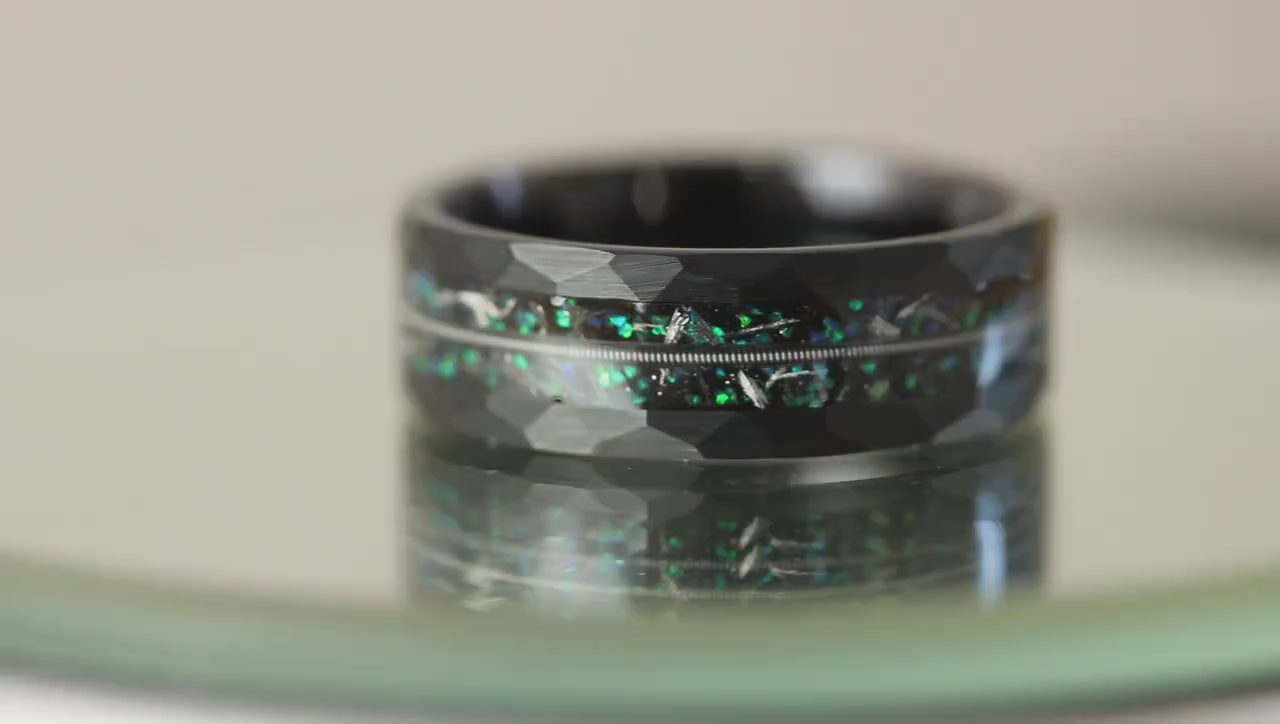 Peacock Opal Meteorite Guitar string Black Tungsten Carbide Rings - Cu – TungstenRingStudio
