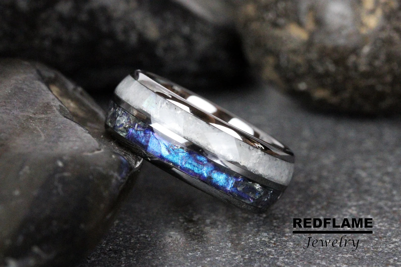 Alexandrite Rainbow Moonstone Tungsten Ring- Custom Order – TungstenRingStudio