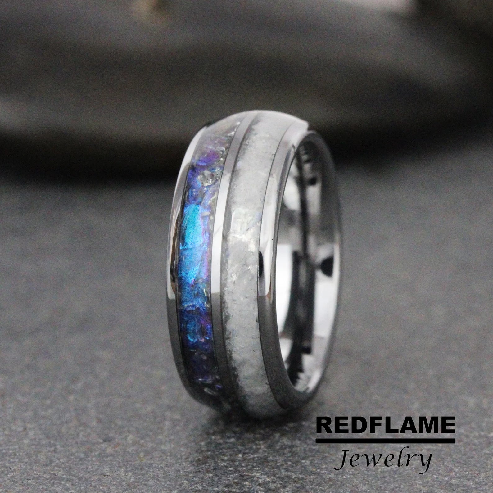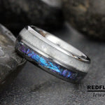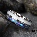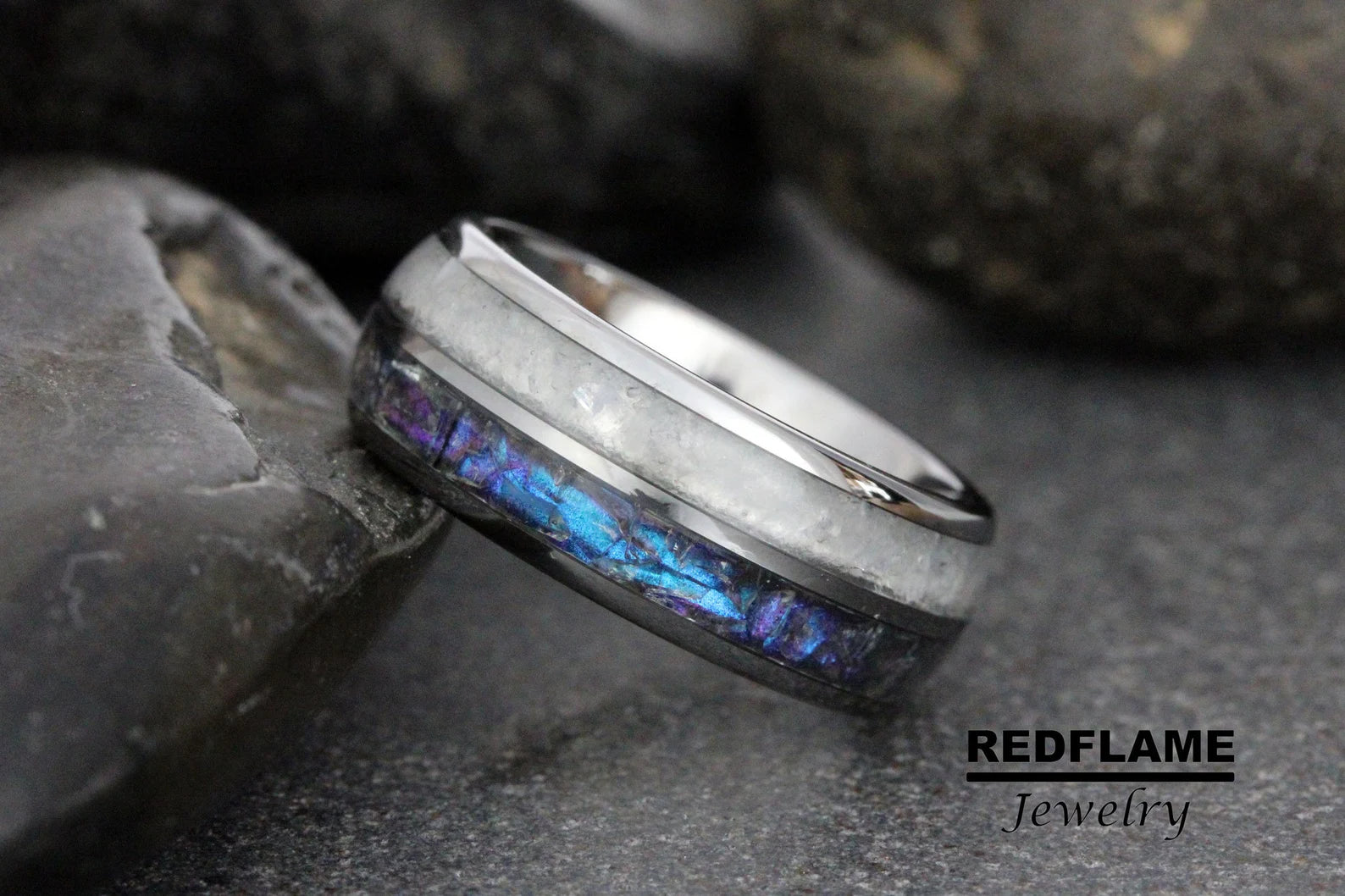 Polished Alexandrite Wedding Band, Silver Gray Rainbow Moonstone Ring, Rose Gold Black Yellow Tungsten Wedding Ring, Mens Ring Custom Order