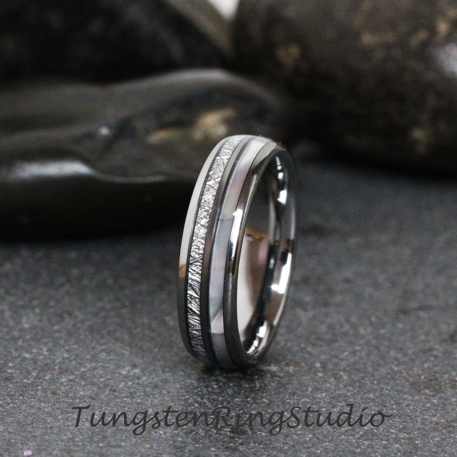6mm Mother of Pearl Meteorite Tungsten Ring – TungstenRingStudio