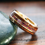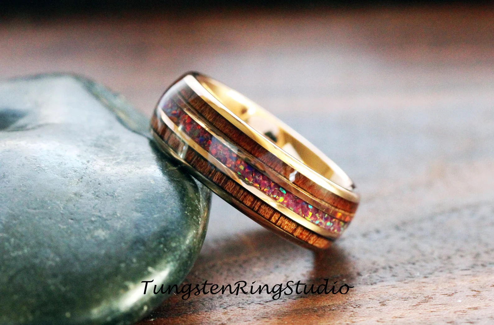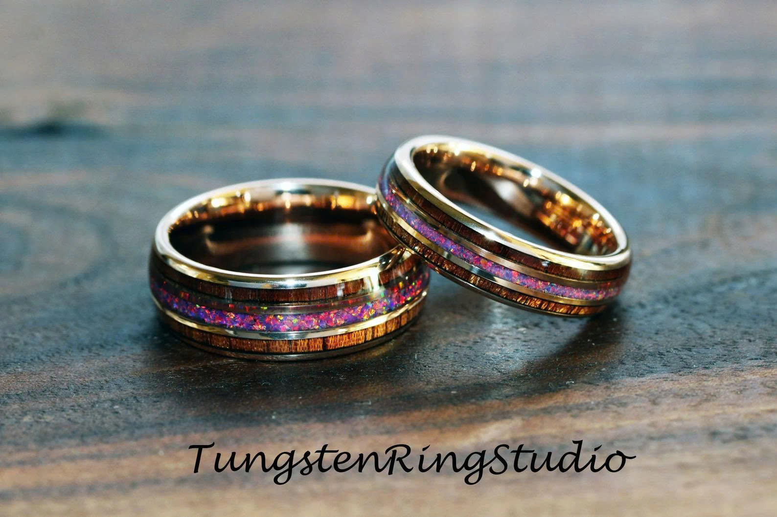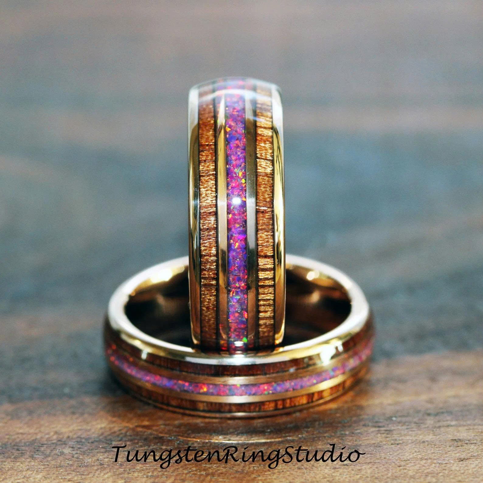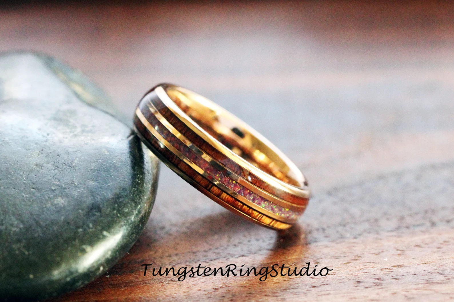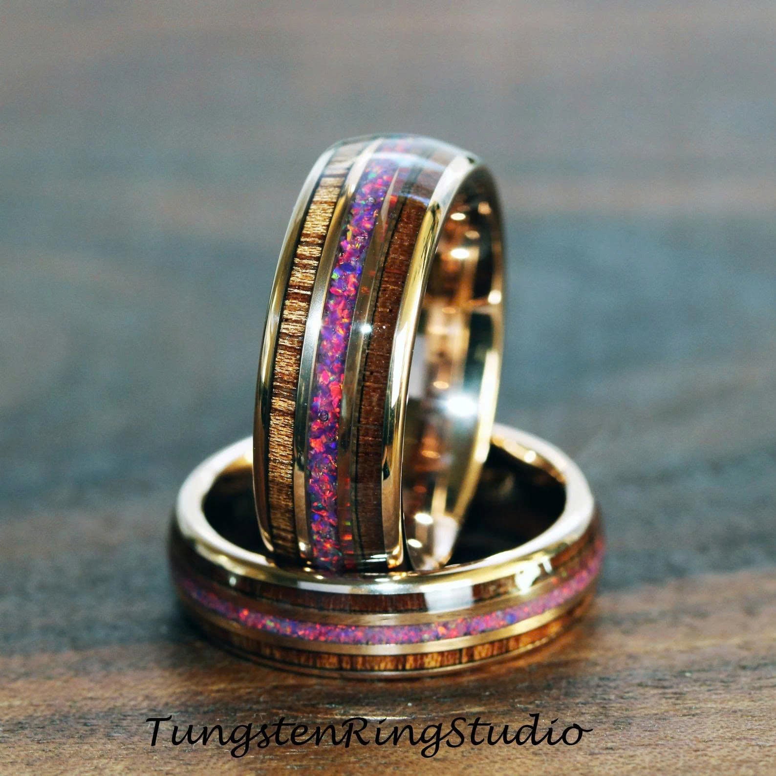 Purple Galactic Opal and Koa Wood Rose Gold Tungsten Carbide Ring 6 m – TungstenRingStudio