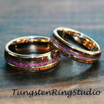 Crushed Opal Koa Wood Rose Gold Tungsten Wedding Ring Match His and Hers Wedding Set Rose Gold Wedding Ring Set Anniversary Ring