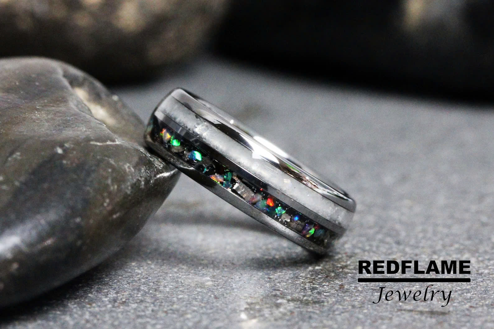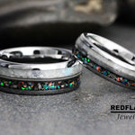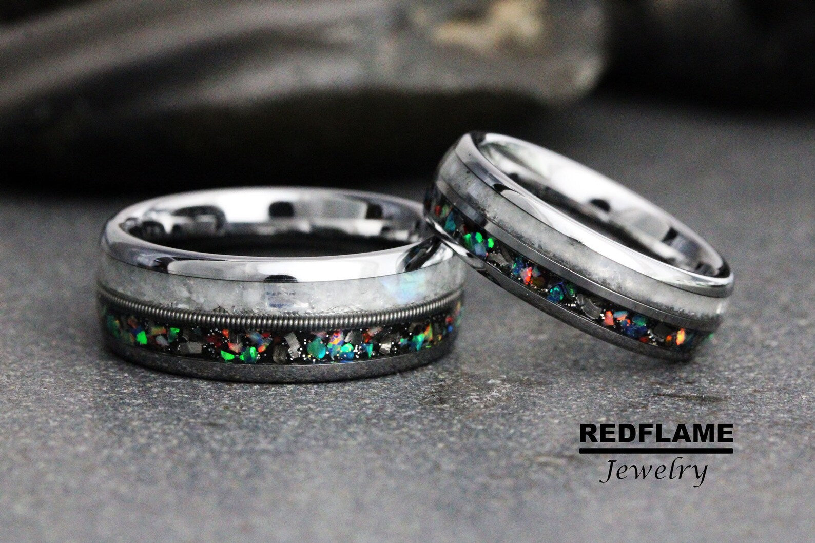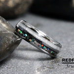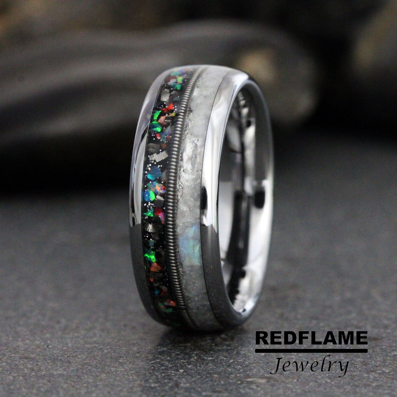 Rainbow Moonstone Galaxy guitar string Silve Gray Tungsten Carbide Rin – TungstenRingStudio