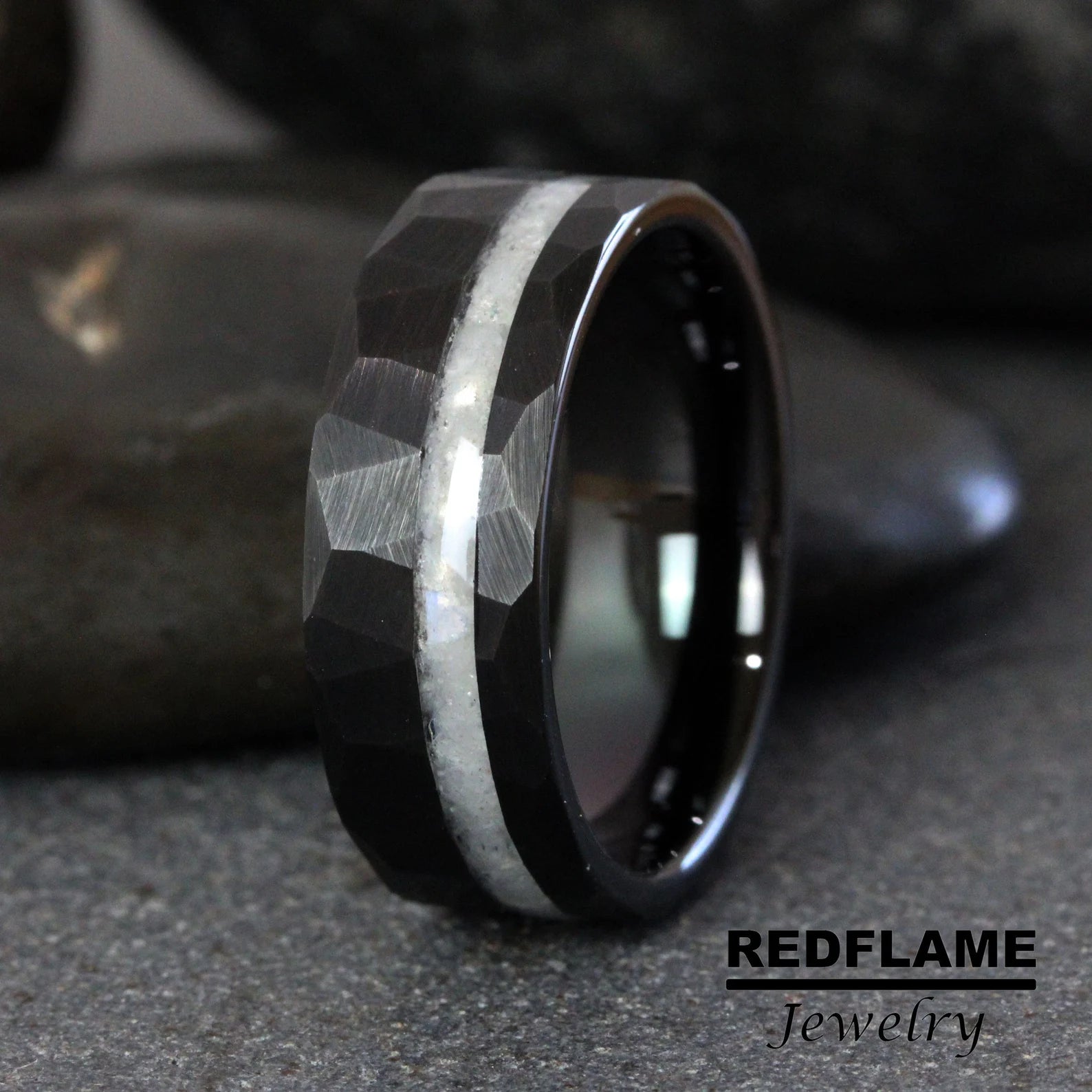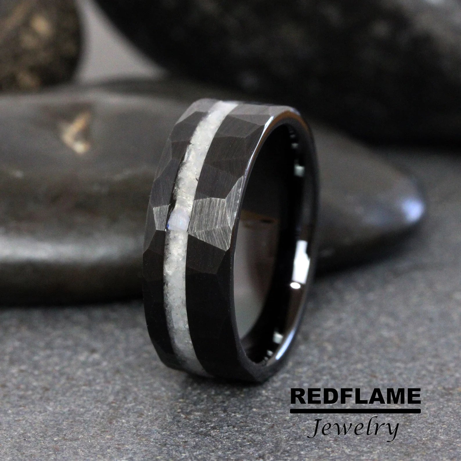 Rainbow Moonstone Hammered Tungsten Ring- Custom Order – TungstenRingStudio