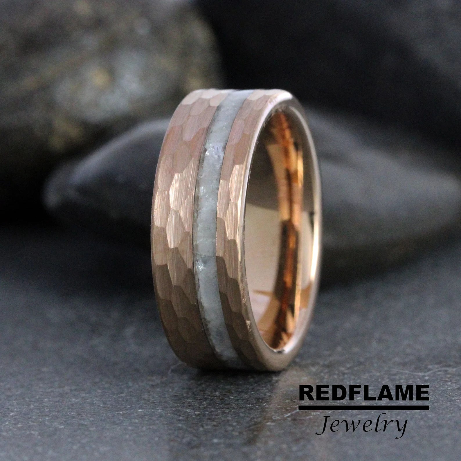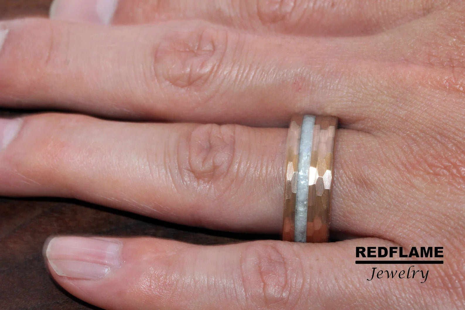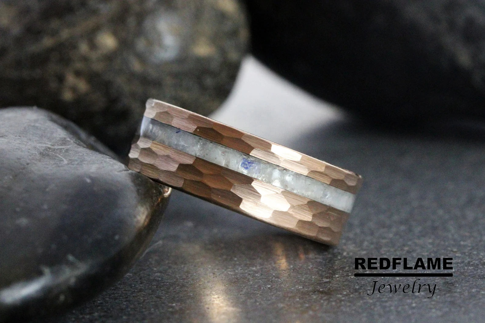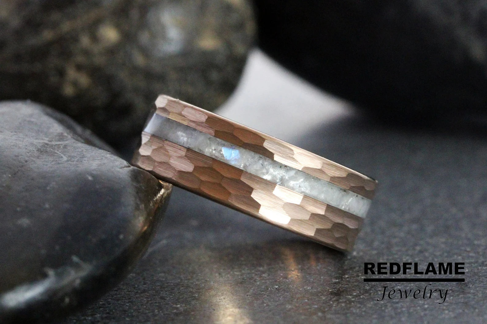 Rainbow Moonstone Hammered Ring- Custom Order – TungstenRingStudio