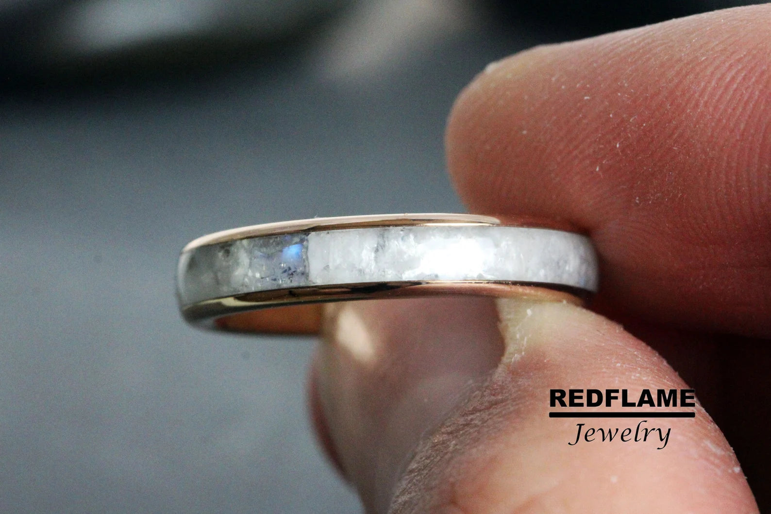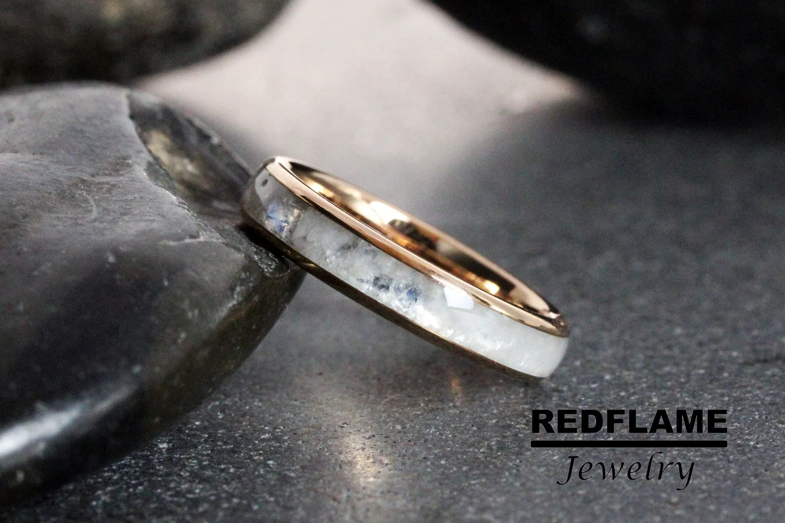 Rainbow Moonstone Rose Gold Tungsten Ring- Custom Order – TungstenRingStudio