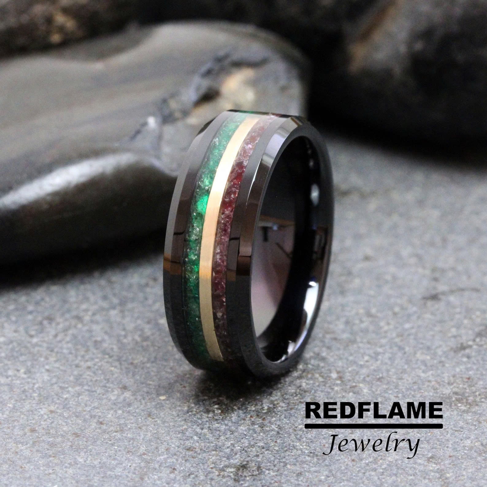 Red Garnet 14k Gold filled wire Emerald Black Tungsten Carbide Rings - – TungstenRingStudio
