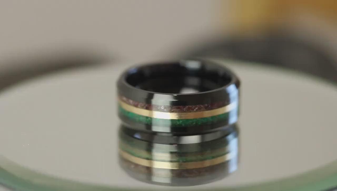 Please note: the materials have their own unique colors and patterns. Each ring is one-of-a-kind.