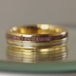 Red Garnet White Birch Wood Yellow Gold Tungsten Carbide Rings - Custom Order