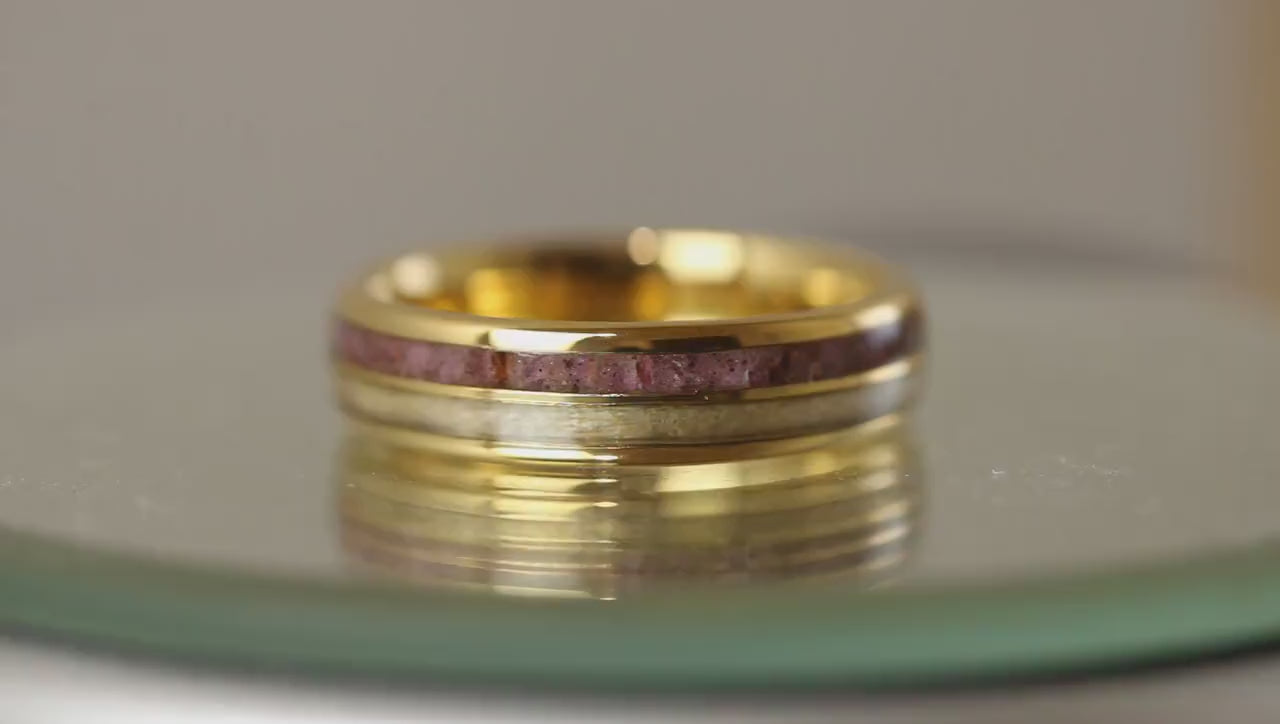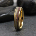 Red Garnet White Birch Wood Yellow Gold Tungsten Carbide Rings - Custo – TungstenRingStudio