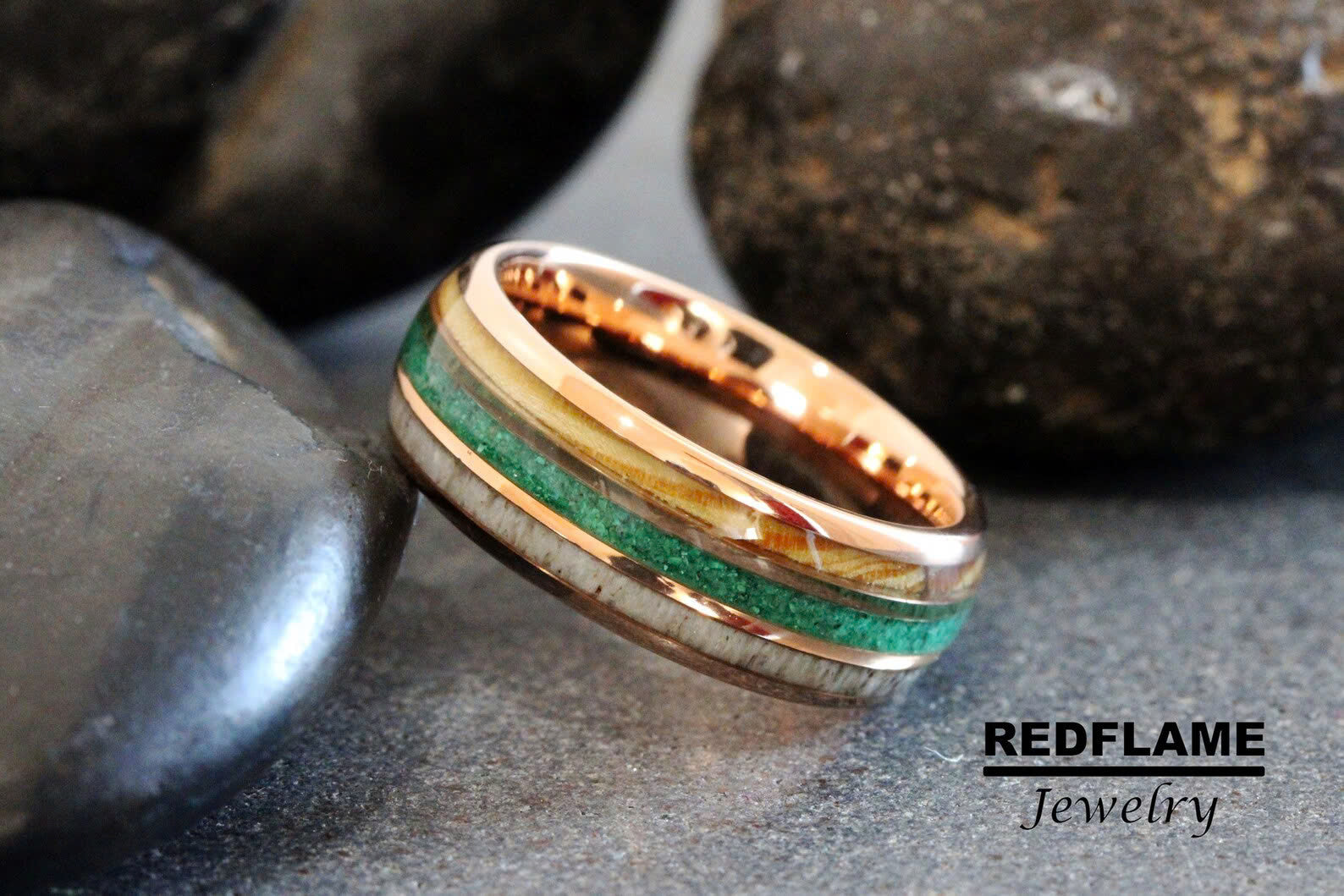Green Malachite Meteorite Wedding Ring Meteorite Rose Gold Yellow Silver Band Gibeon Tungsten Black Anniversary Promise Mens Ring Womens