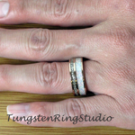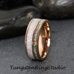 Fire White Opal and Silver German Glass Inlaid Rose Gold Tungsten Carbide Ring 6 mm 8 mm