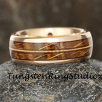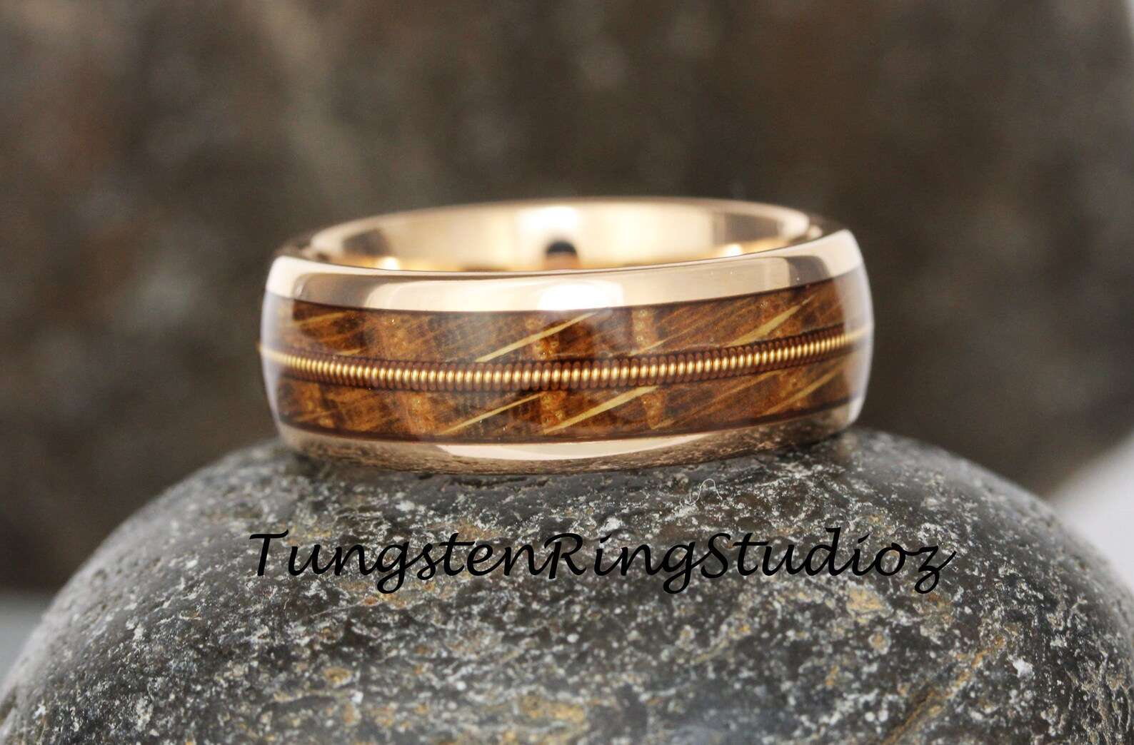 Guitar String Whiskey Barrel Rose Gold Tungsten Carbide Ring – TungstenRingStudio