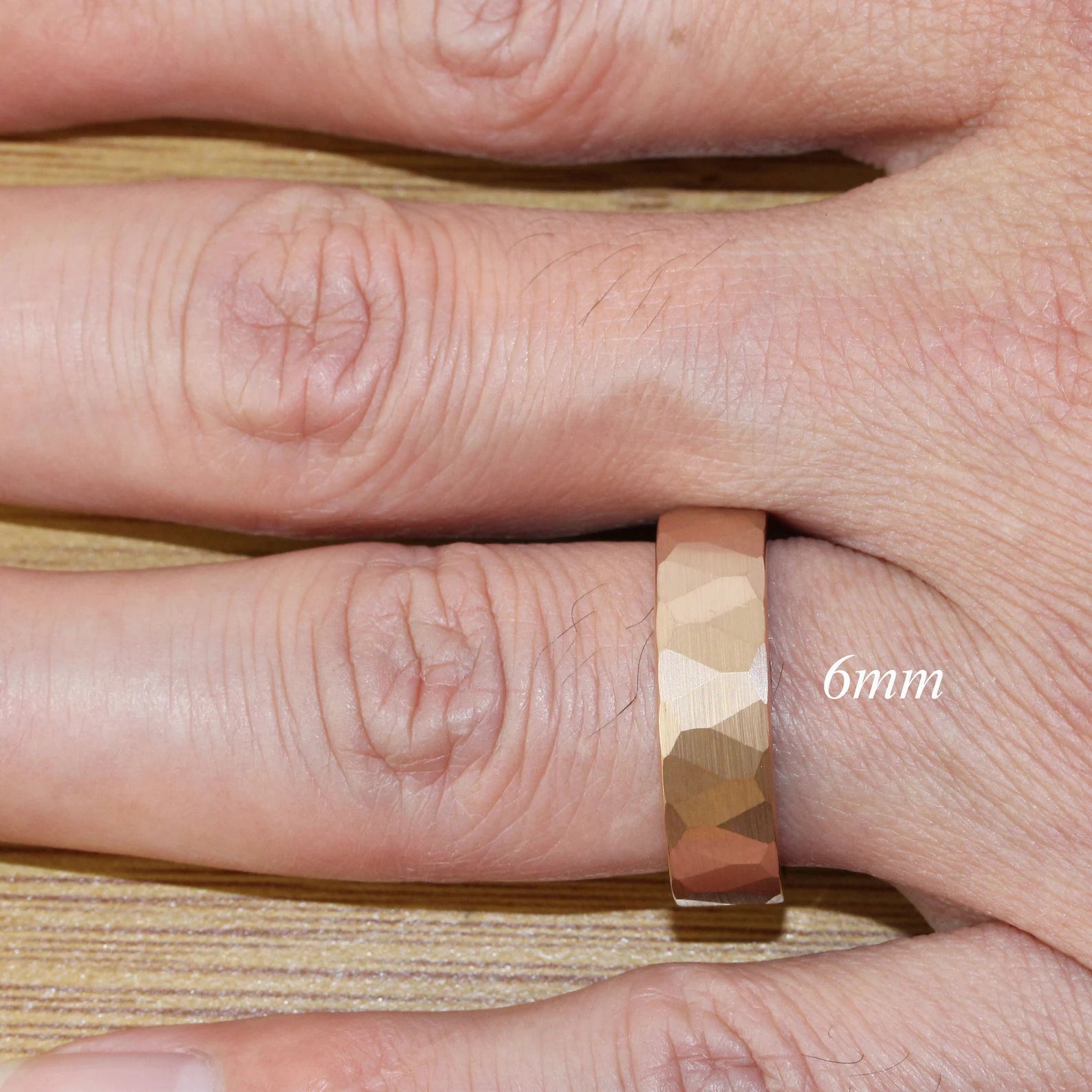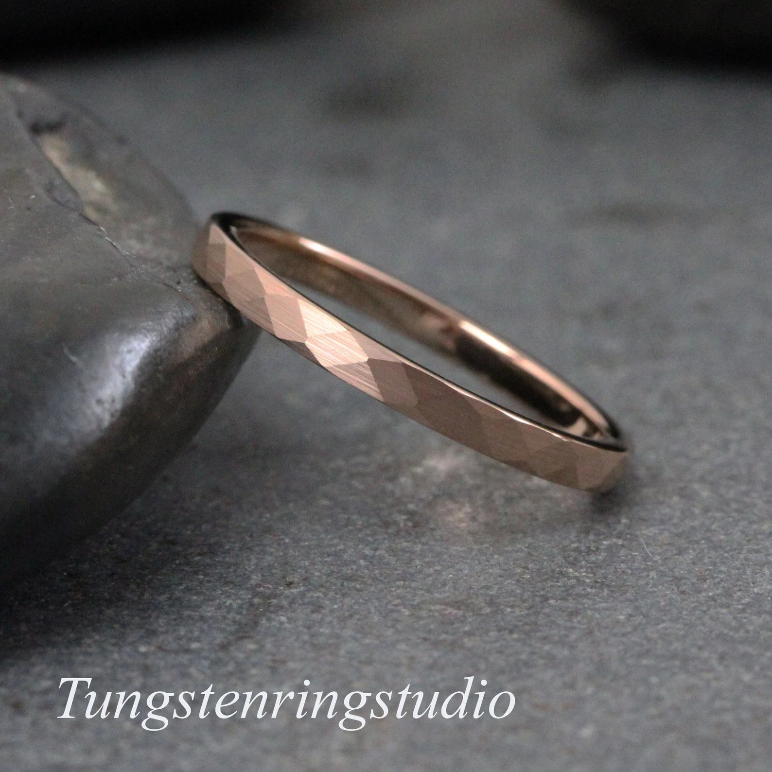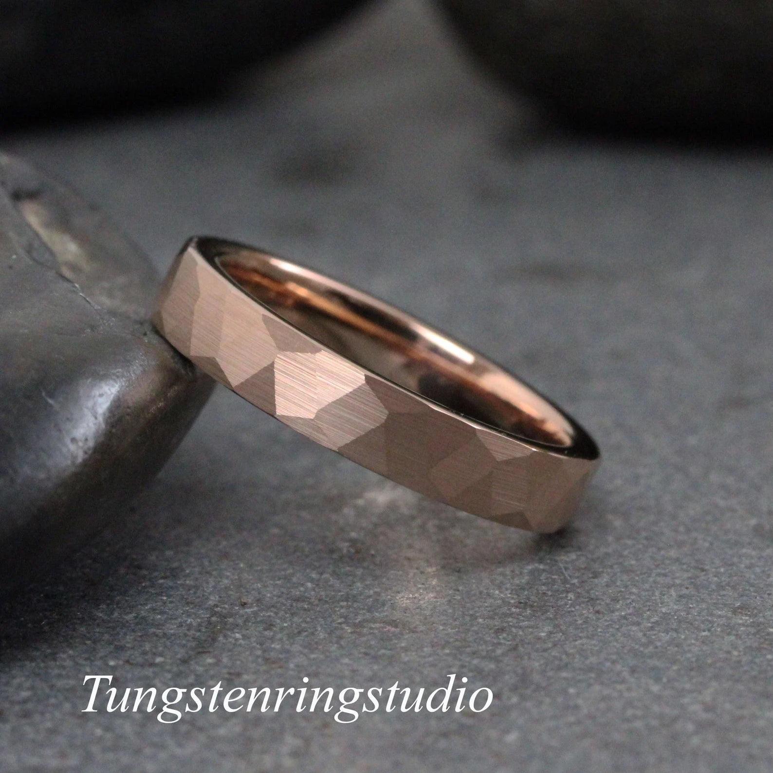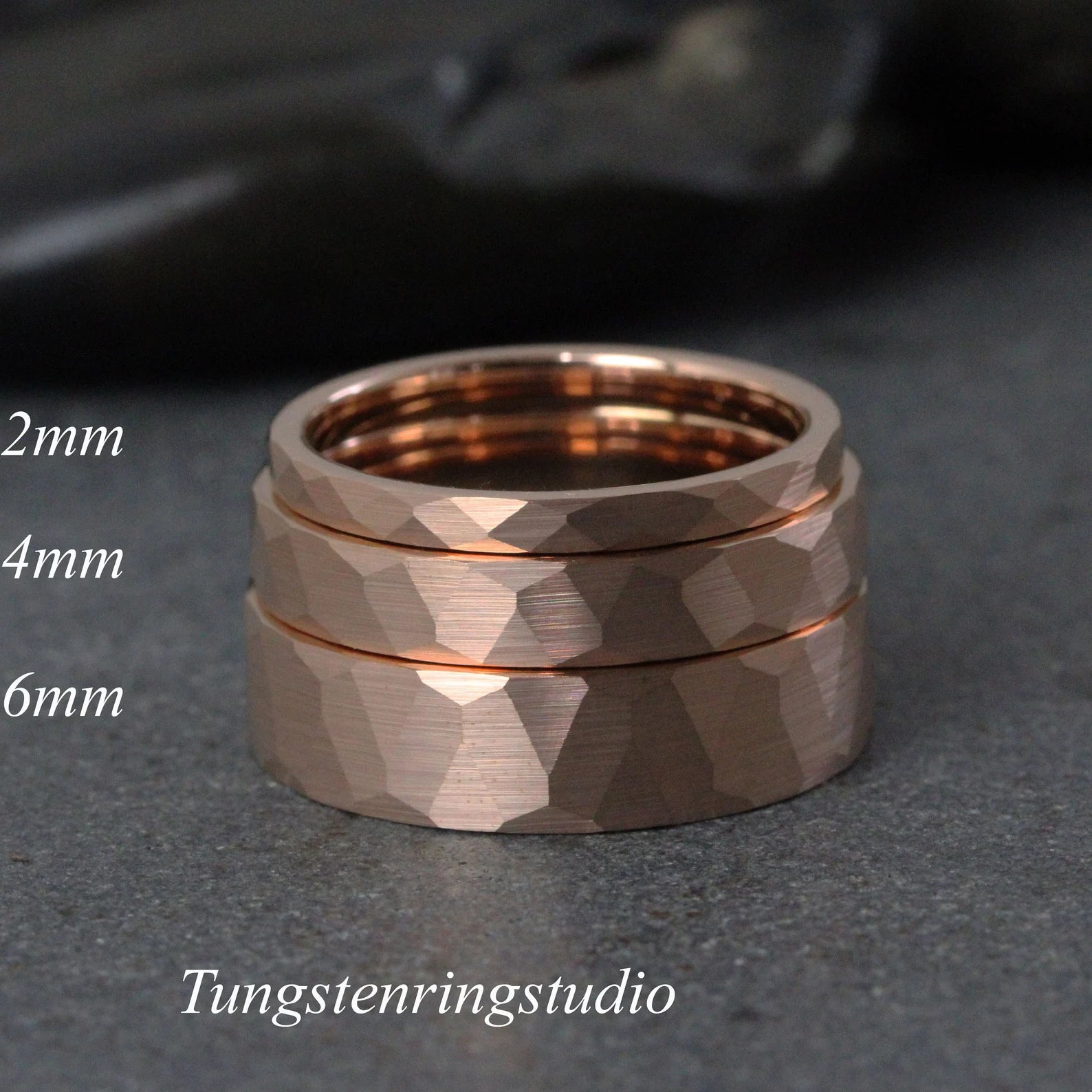 Rose Gold Hammer Tungsten Carbide Ring 2,4,6 mm – TungstenRingStudio