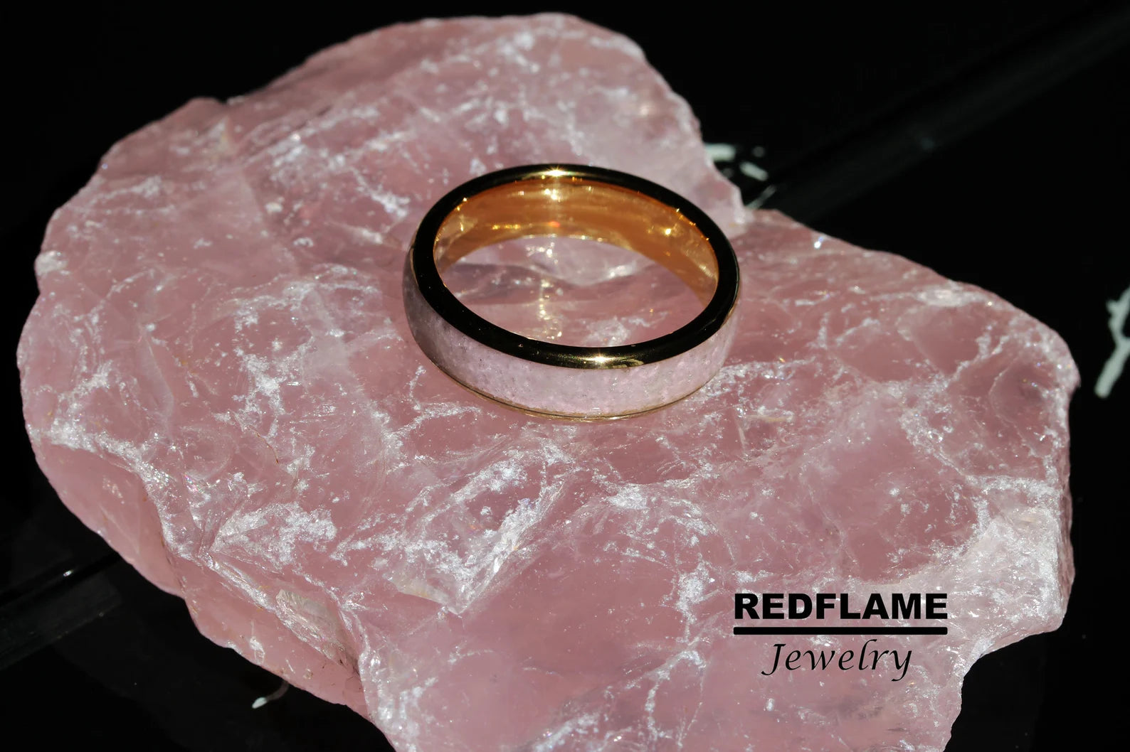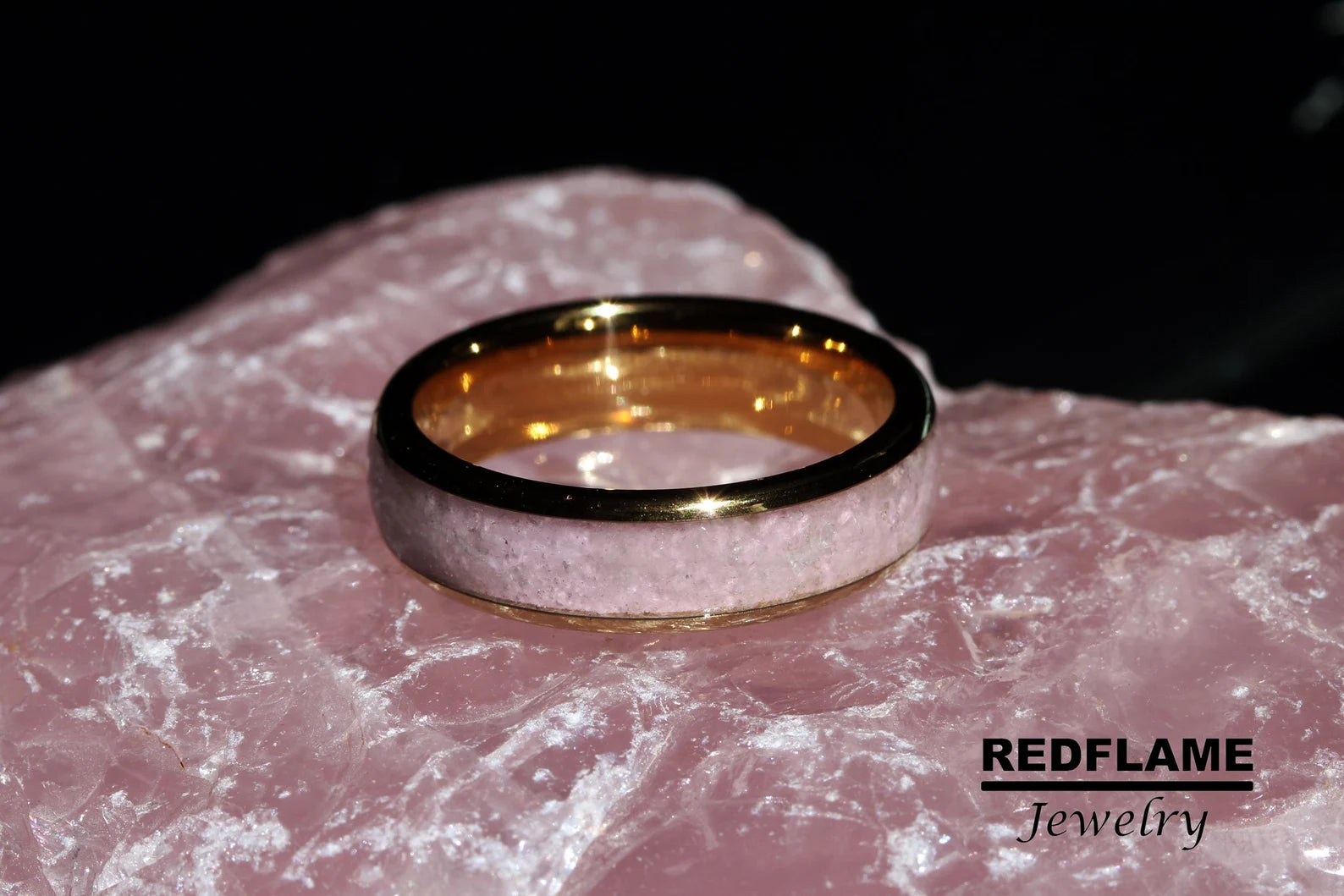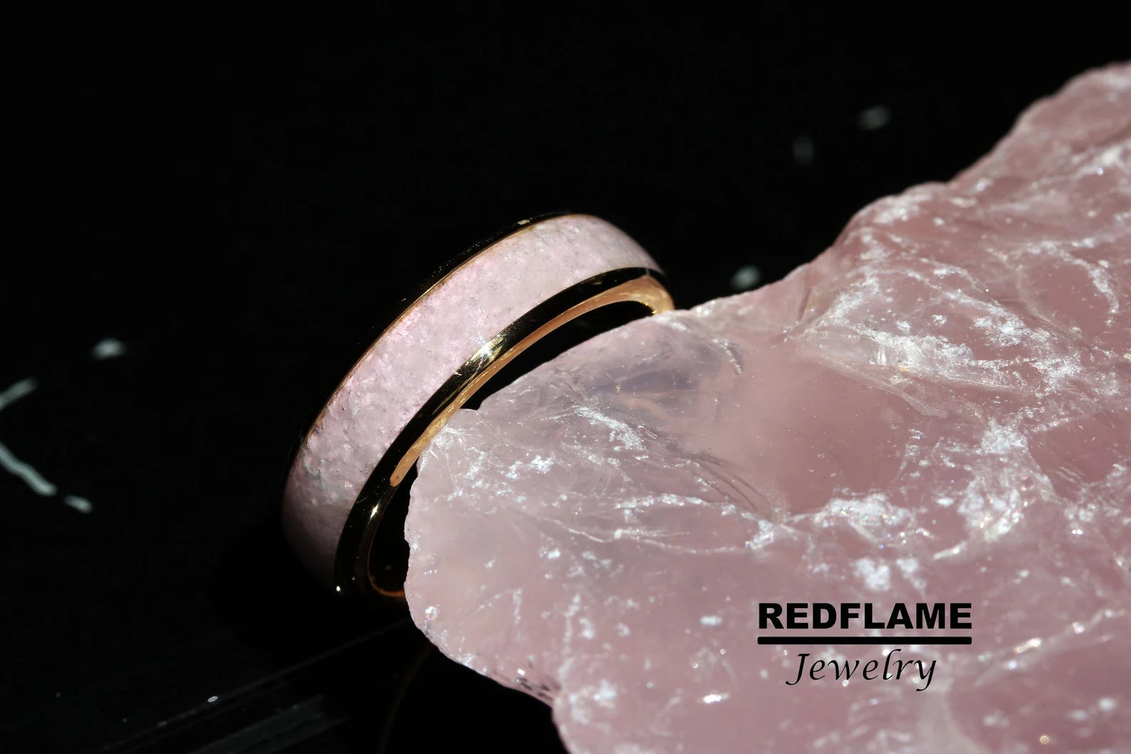 Rose Quartz Wedding Ring Crushed Wedding Ring Natural Polished Silver Gray Rose Black Yellow Tungsten Mens Custom Order Women Band Ring