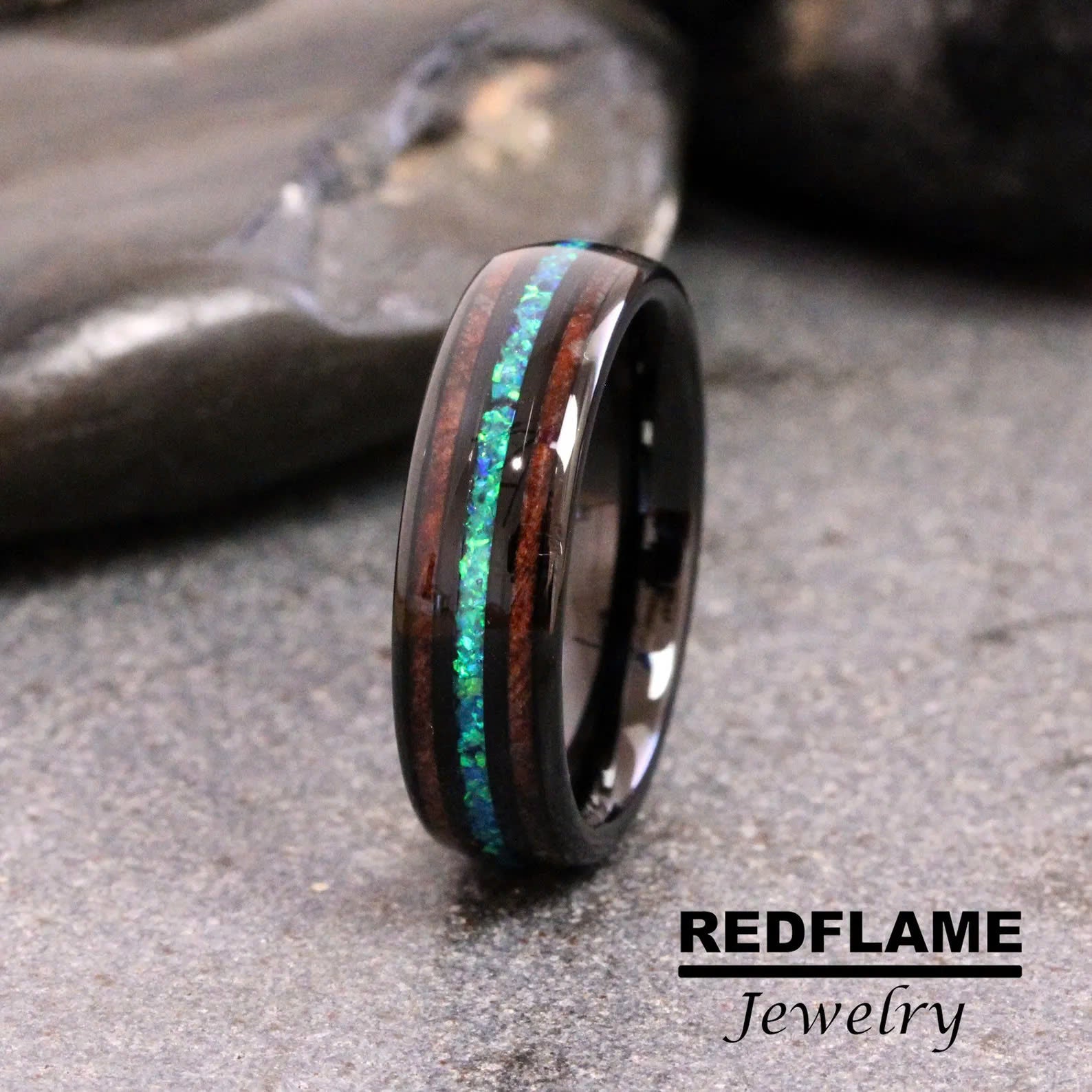 Sequoia California Redwood blue Opal peacock Black Tungsten Carbide Ri – TungstenRingStudio
