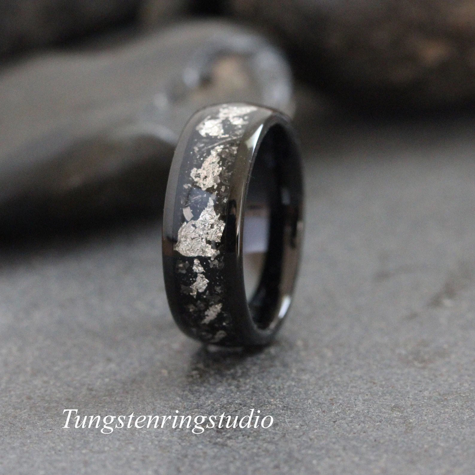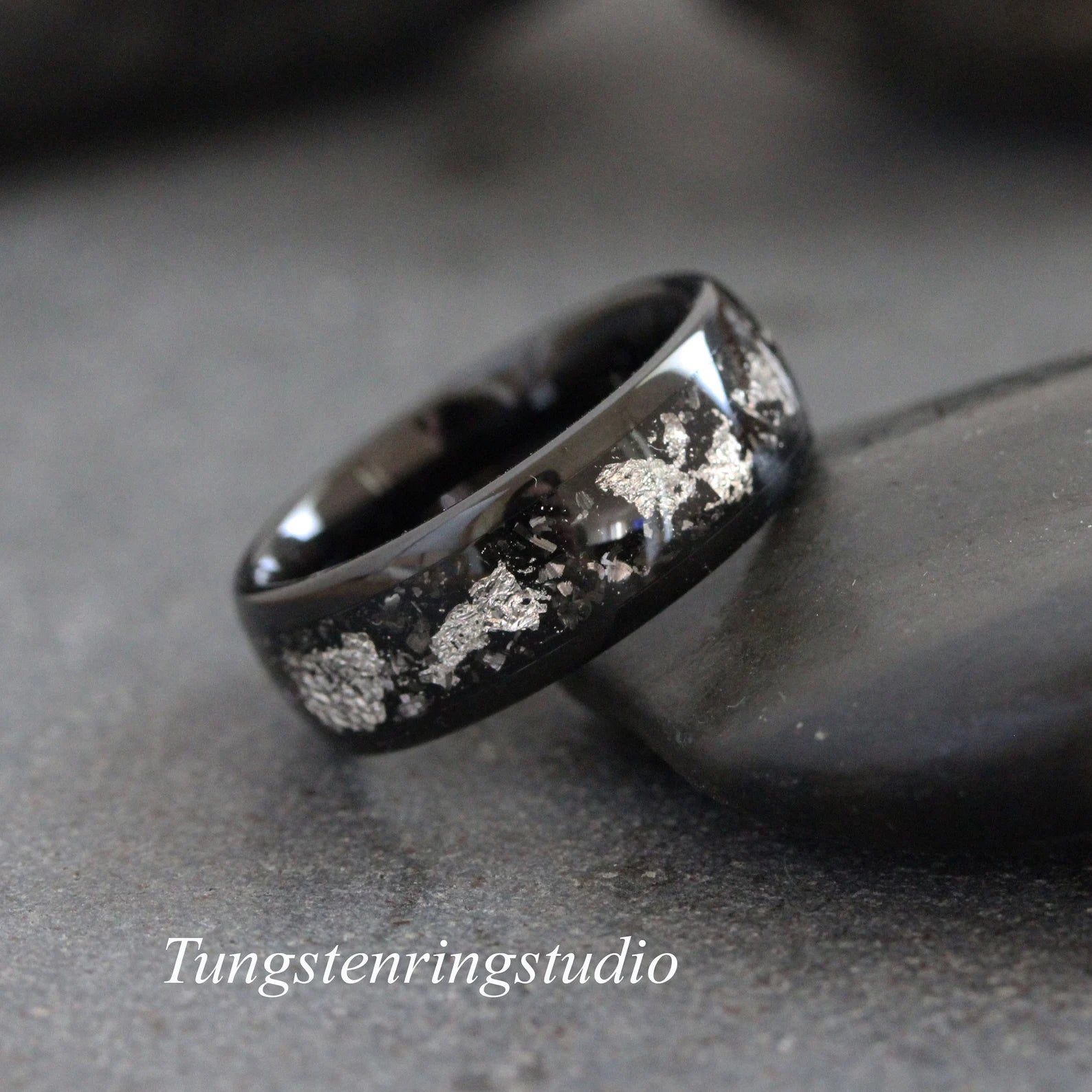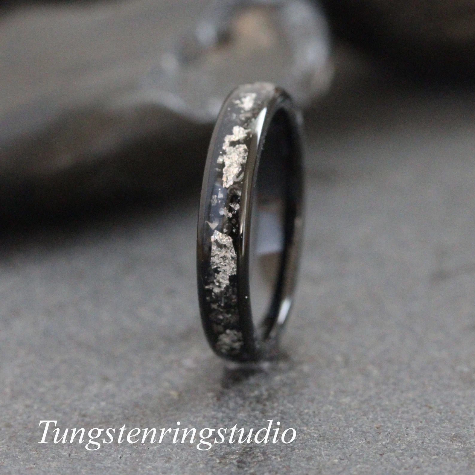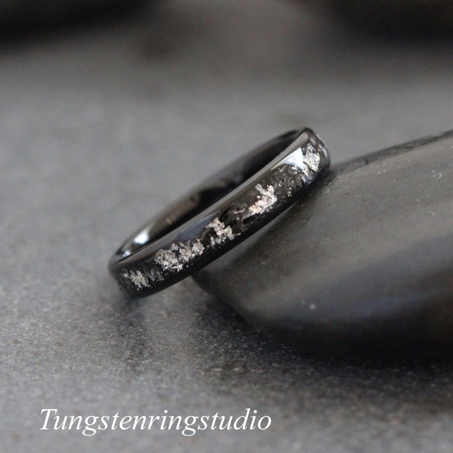 Silver Leaf Meteorite Black Tungsten Carbide Ring 4mm – TungstenRingStudio