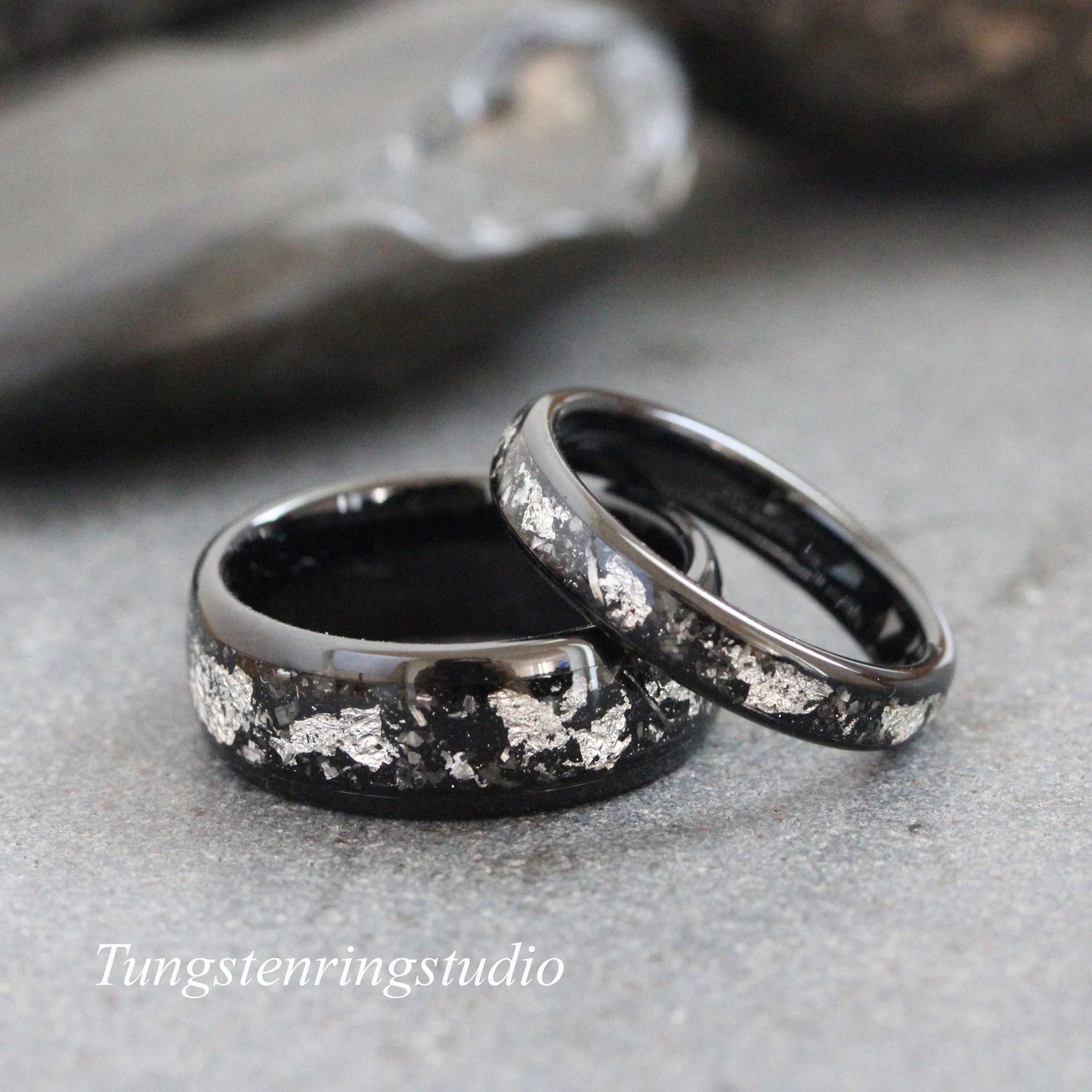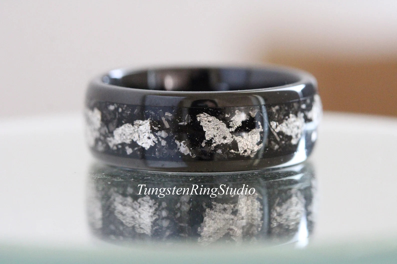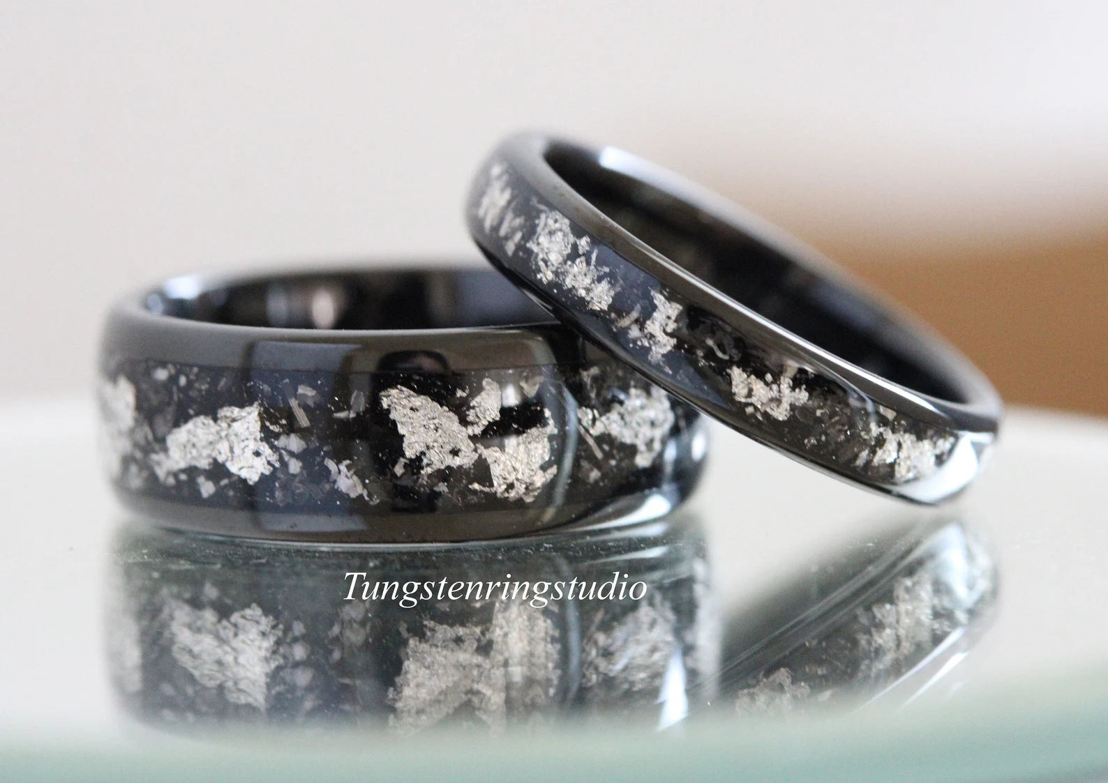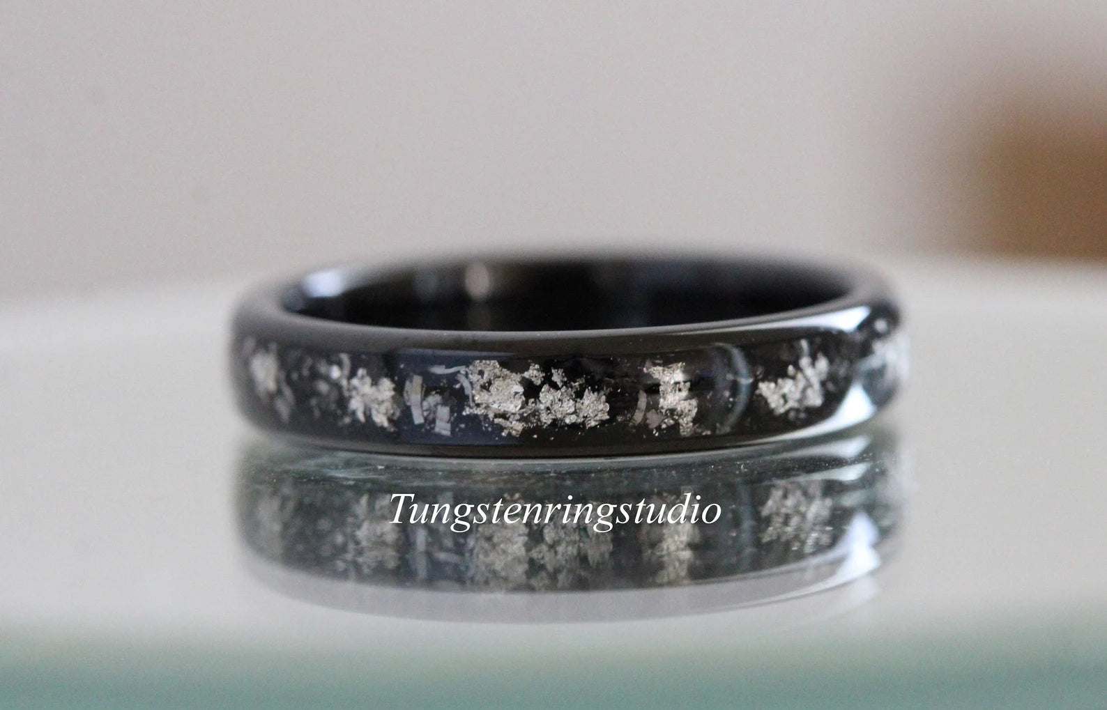 Silver Leaf Meteorite Black Tungsten Carbide Ring 4mm – TungstenRingStudio