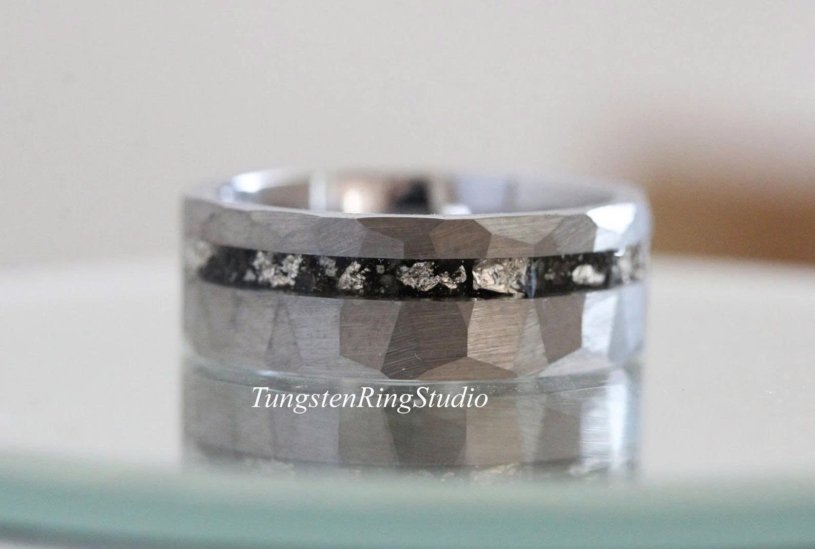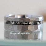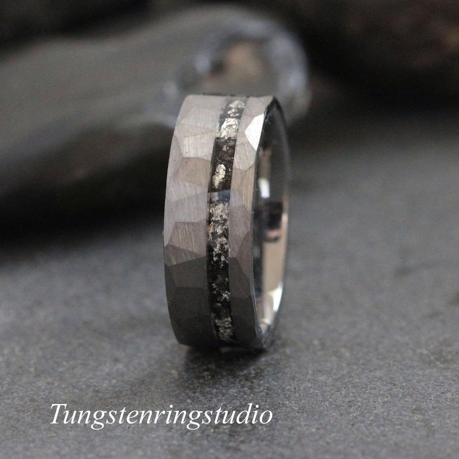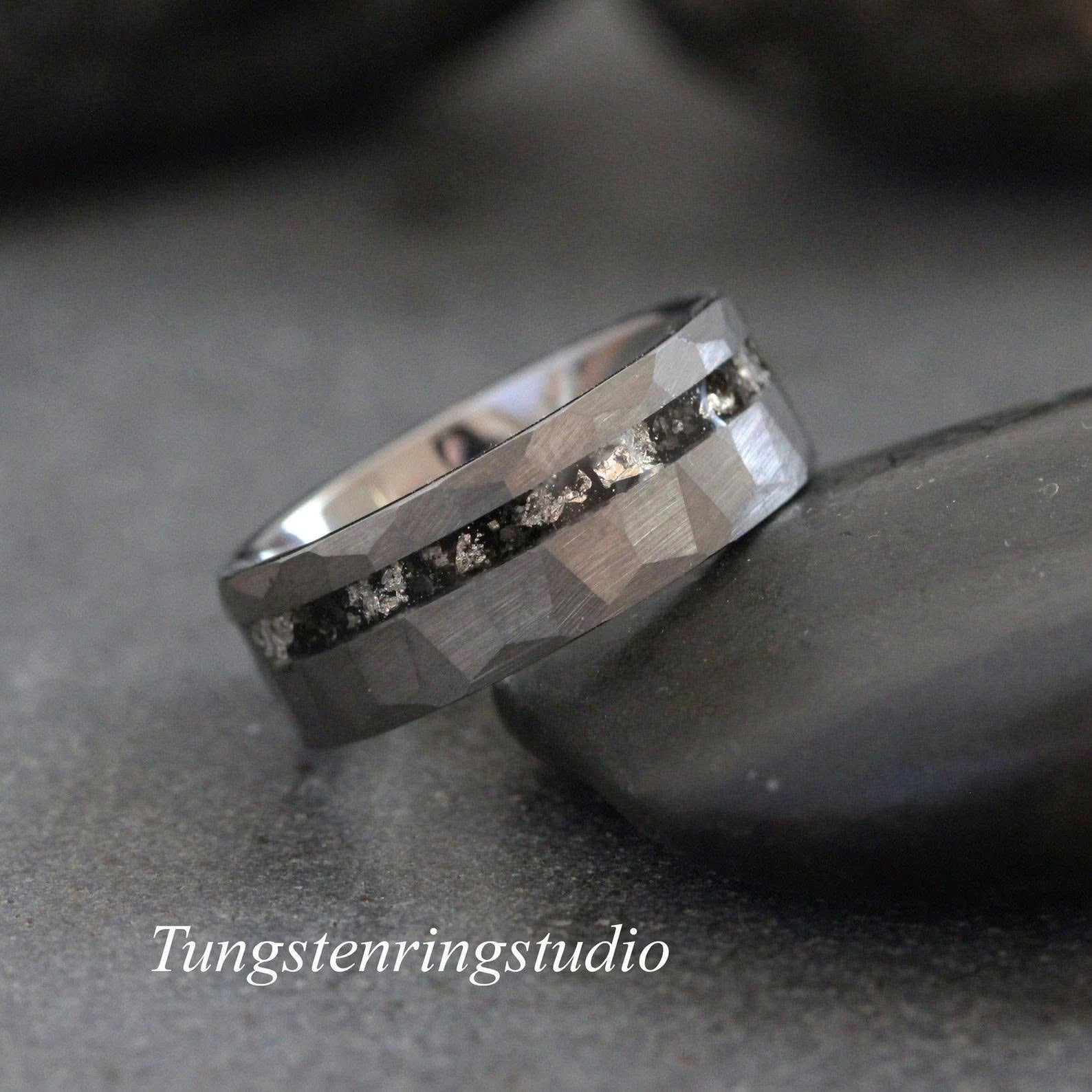 Silver Leaf Meteorite Hammered Silver Gray Tungsten Ring – TungstenRingStudio