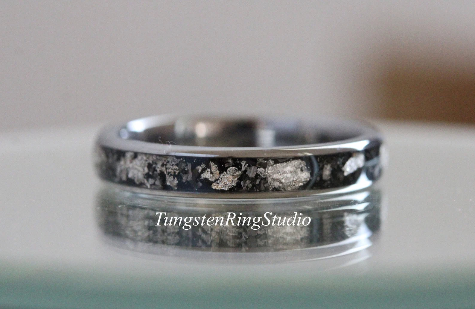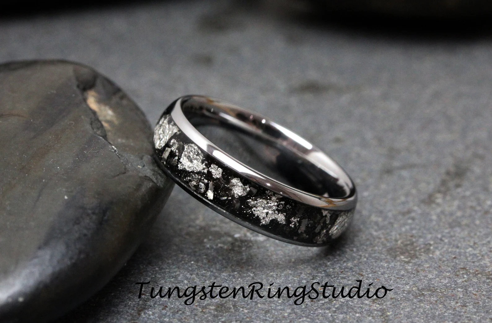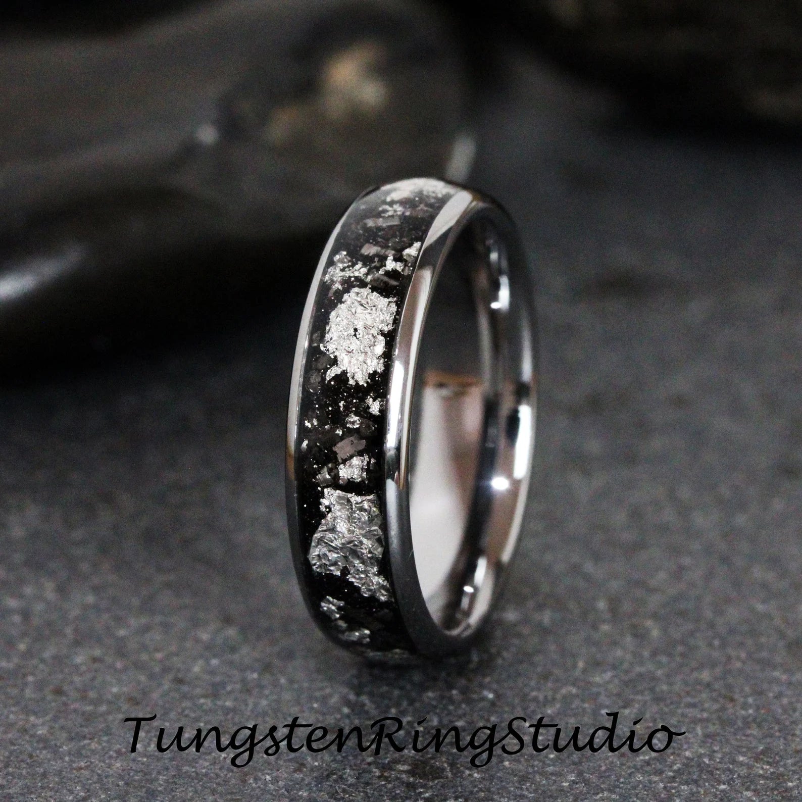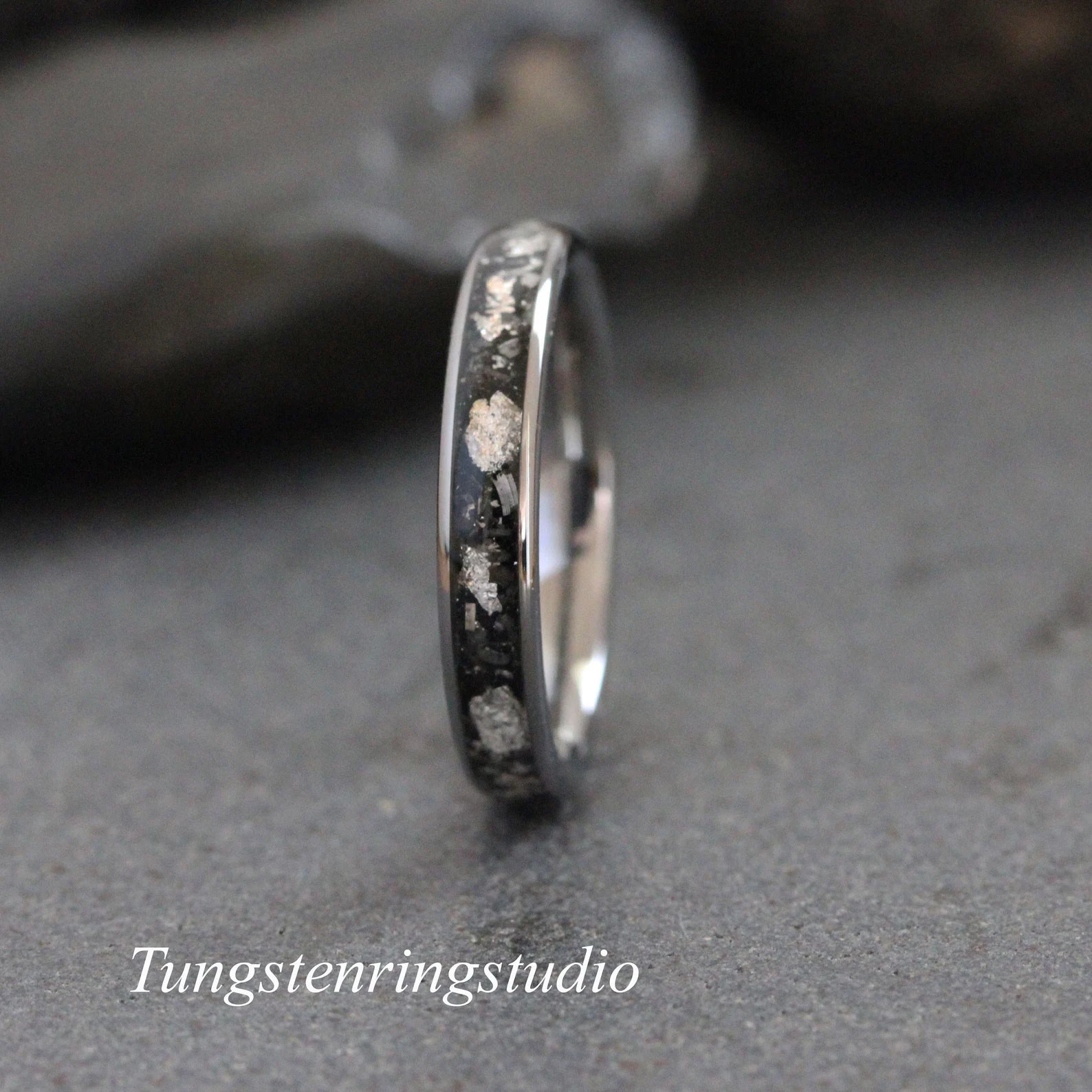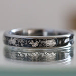 Silver Leaf Meteorite Polished Hammered Tungsten Carbide Ring – TungstenRingStudio